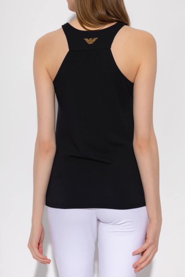 Black top with straps from EA7 Emporio Armani. This round neck design is decorated with gold-tone logo with shiny appliqués.