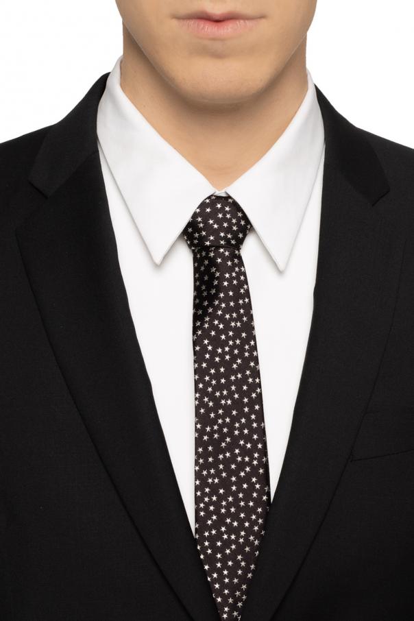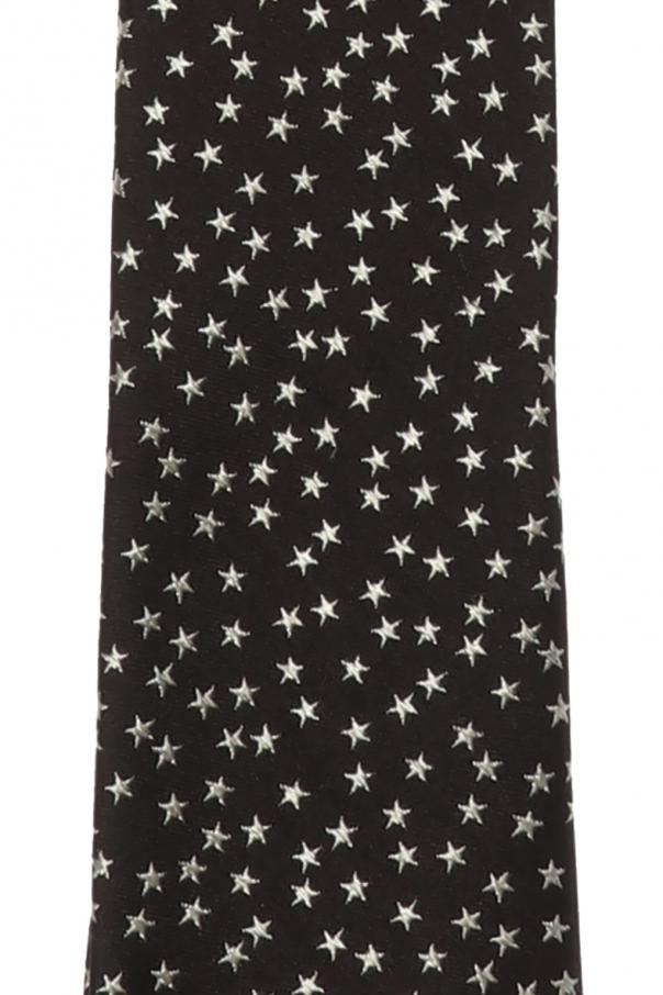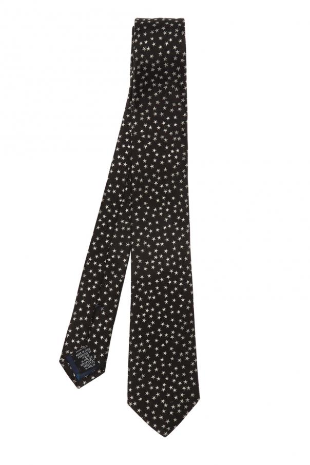 Black tie from Paul Smith. Made of silk. Decorated with an embroidered pattern featuring light grey stars.