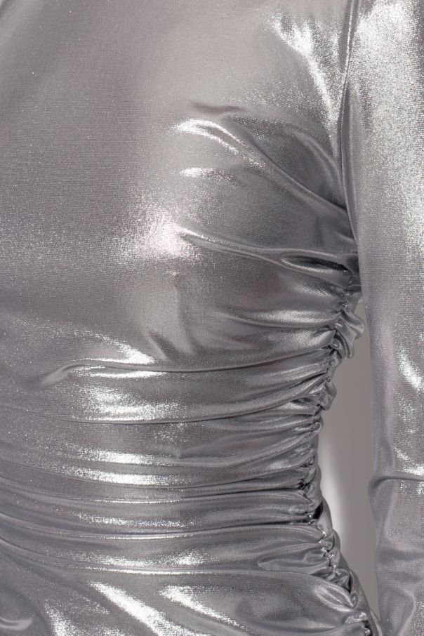 Silver-tone dress with a high neck from Dolce & Gabbana. Crafted from a stretch jersey with draping, this style features long sleeves and a back zipper with a hook & eye fastening.