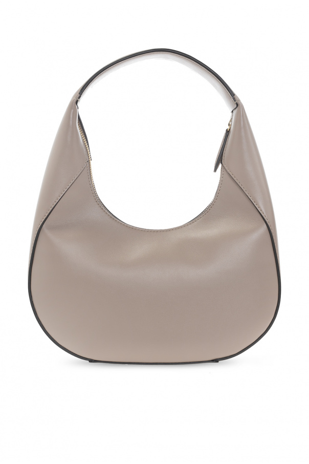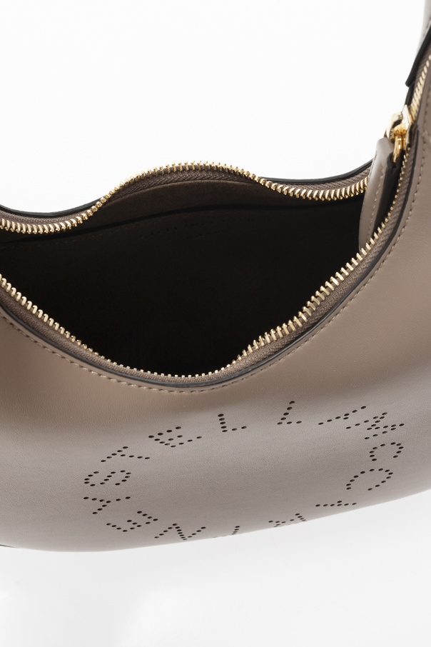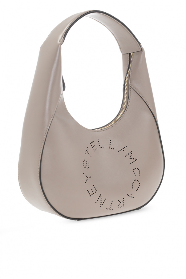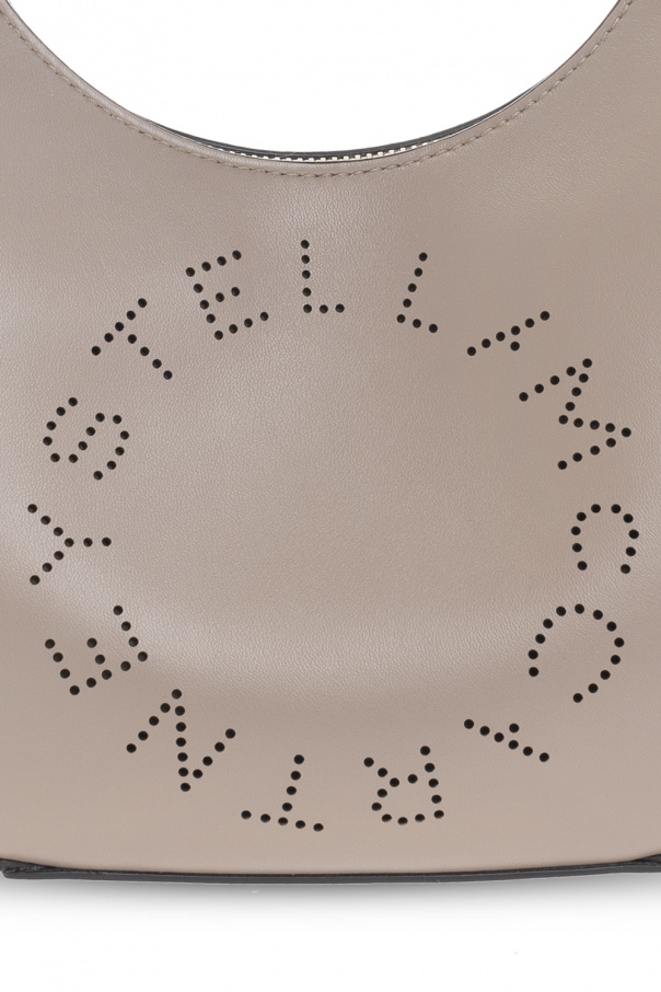 Beige handbag from Stella McCartney. Crafted from vegan leather, this model features a zip fastening, logo perforations on the front, gold-tone metal hardware and one internal compartment with one slip pocket.