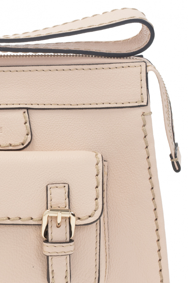Light beige ‘Edith Small’ hand bag from Chloé. Crafted from buffalo leather, this model fastens with a zip and is complete with an embossed logo, a slip pocket, flap pocket with magnetic closure, wrist strap, gold-tone metal hardware and one internal compartment with linen lining.