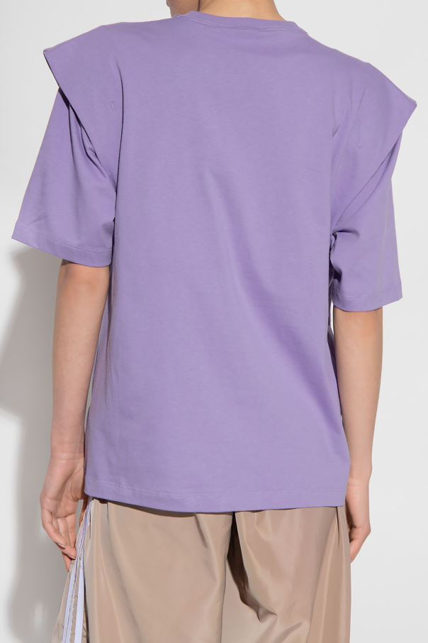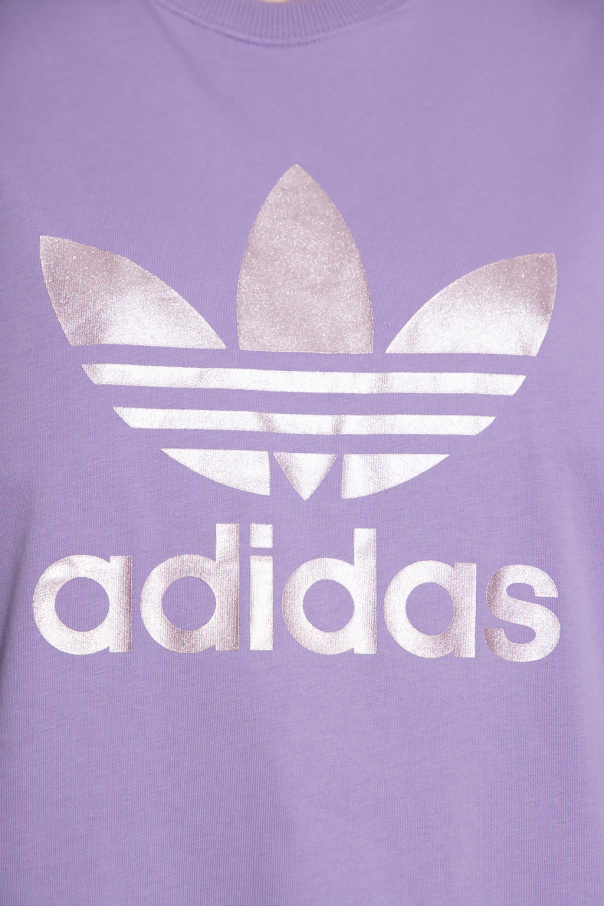 Purple two-piece T-shirt from ADIDAS Originals. Crafted from cotton, this style consists of a sleeveless T-shirt with a glossy logo on the front and a cropped crewneck T-shirt featuring short sleeves, side slits and white logo embroidery on the chest.