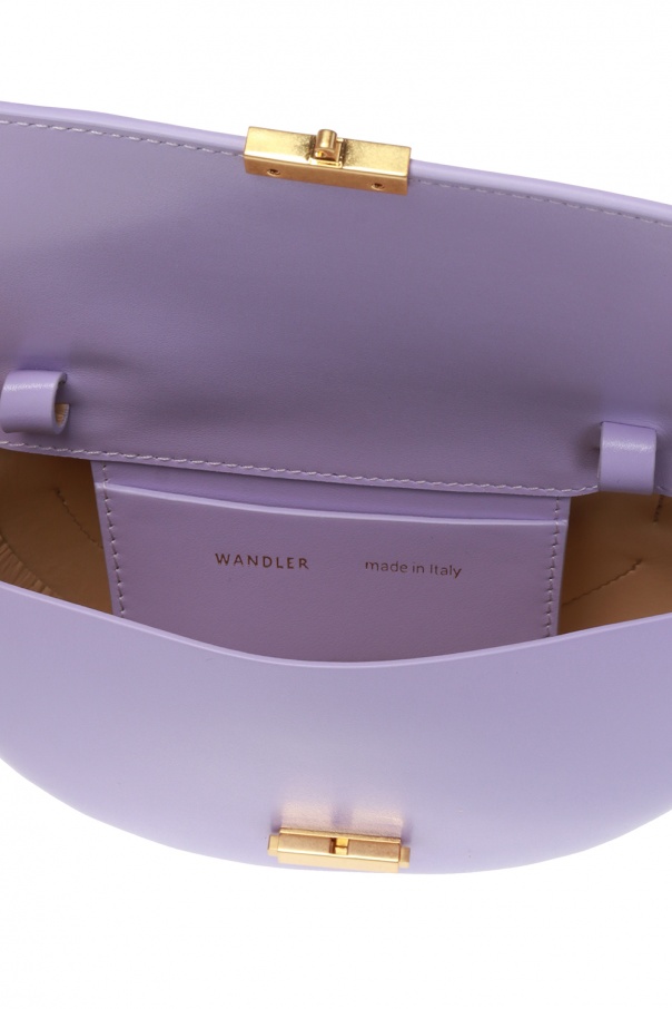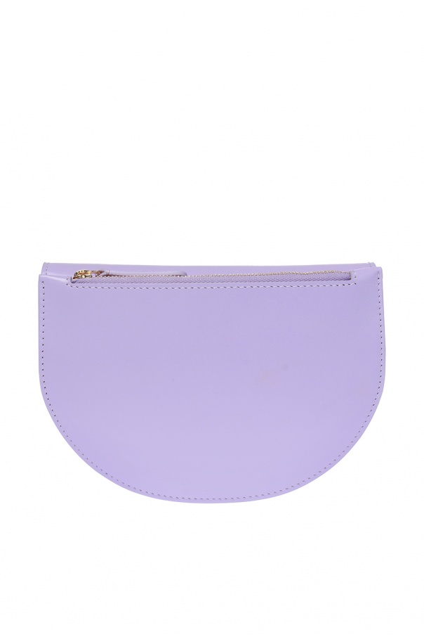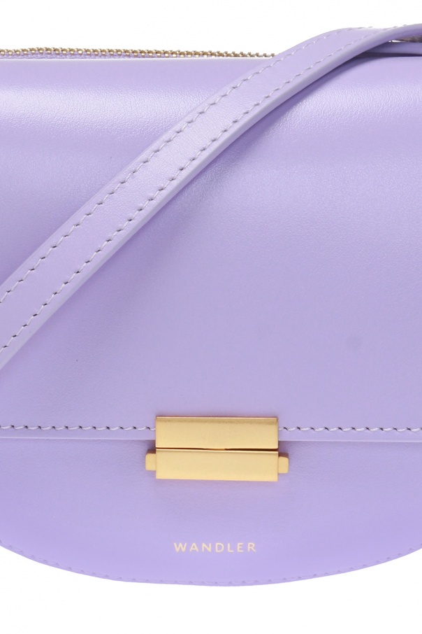 Purple ‘Anna Big’ belt bag from Wandler. Made of calf leather. Metal snap fastening. Front decorated with a gold-tone logo print. Zip pocket at the back. Adjustable shoulder strap. Main internal compartment with a card slot. Gold-tone metal hardware.