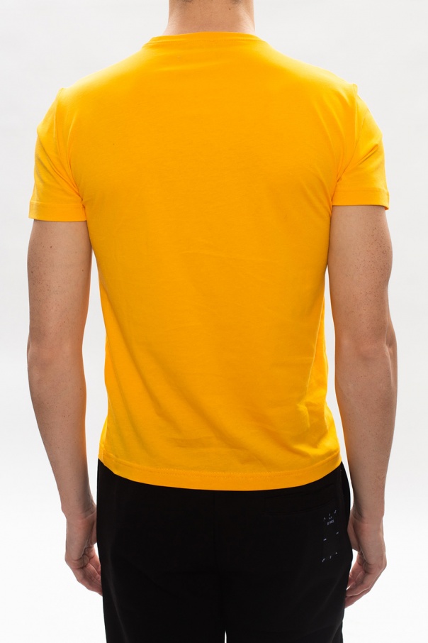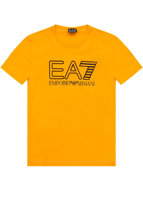 Orange crewneck T-shirt from EA7 Emporio Armani. Made of cotton, this short sleeve design features an embroidered and printed logo in black.