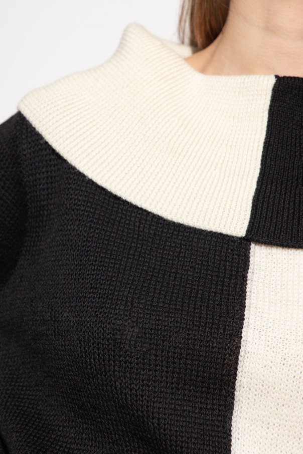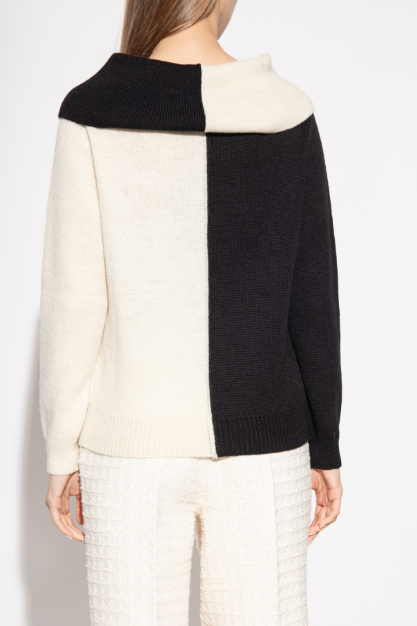 Black and cream sweater from Gucci. Made of wool, this boat neck design has ribbed trims at the hem and cuffs.