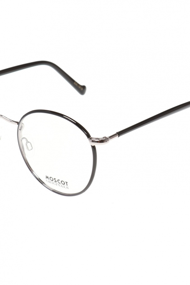 Black and silver-tone ‘Zev’ eyeglasses from Moscot embellished with printed logo.