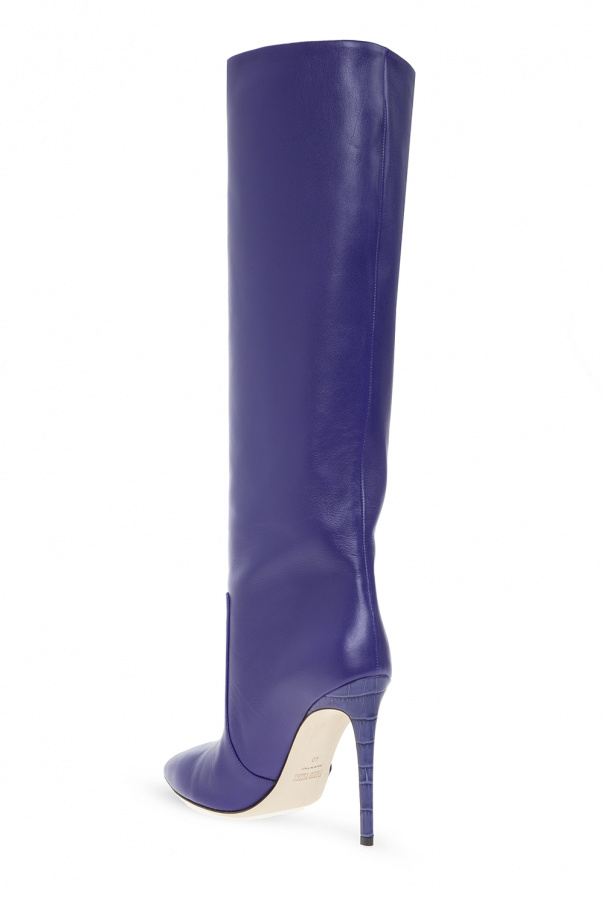 Purple ‘Stiletto’ boots from Paris Texas. Crafted from leather, this pointed toe silhouette rests on a beige leather sole.