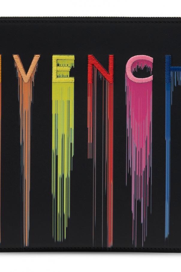 Black clutch from Givenchy. Crafted from calf leather, this item features a zip fastening, colorful embroidered and printed logo pattern and one internal compartment with one slip pocket.