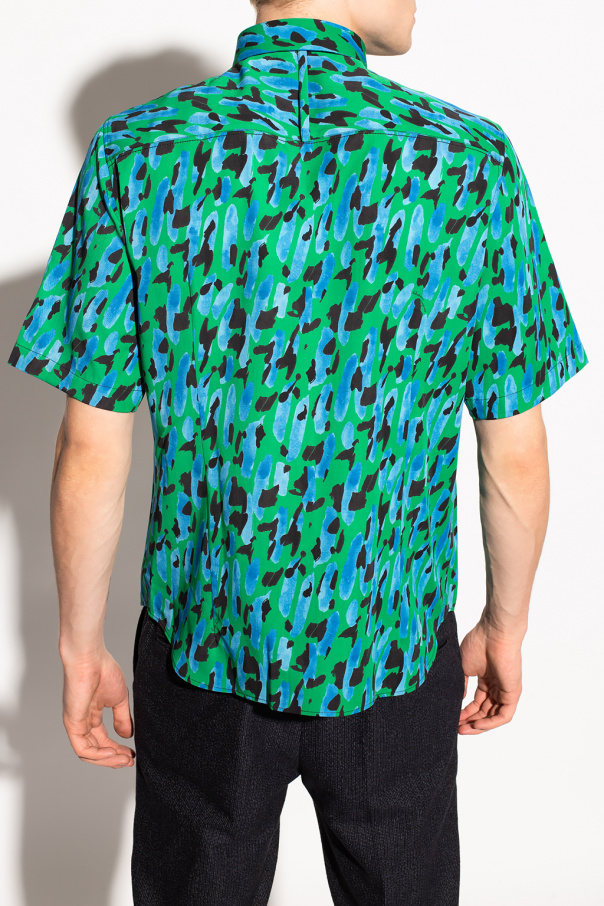 Green shirt from Salvatore Ferragamo. Crafted from wool, this garment features button fastenings, an animal pattern, logo detail and short sleeves.