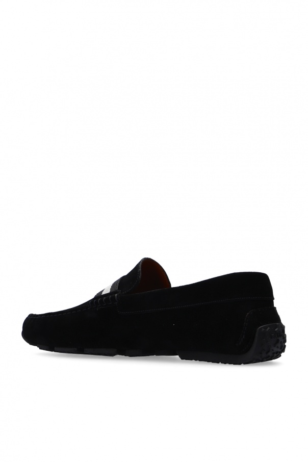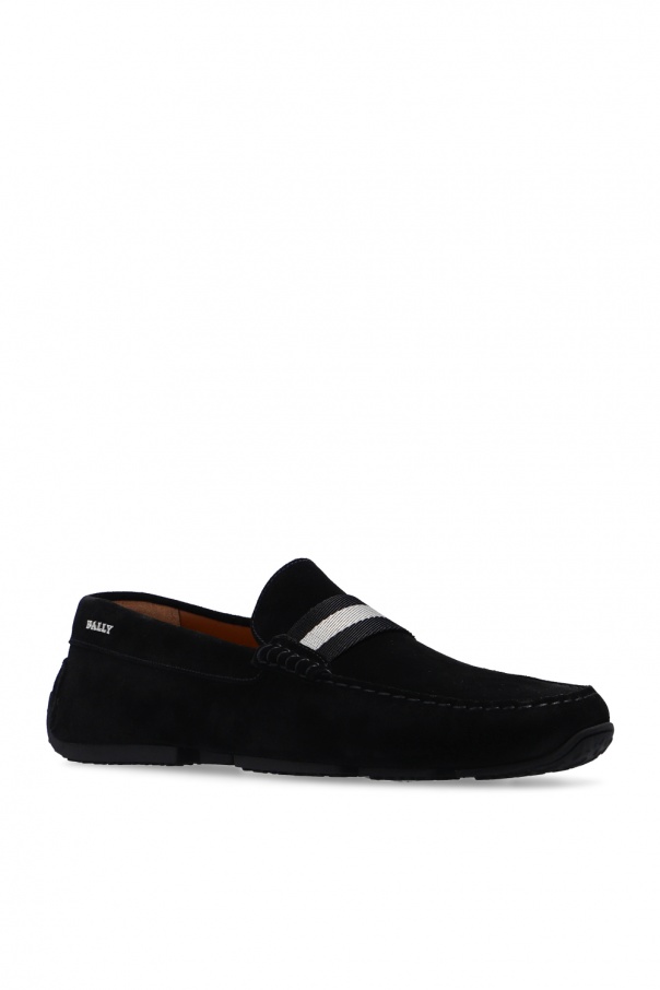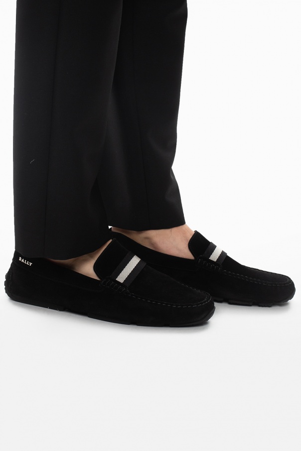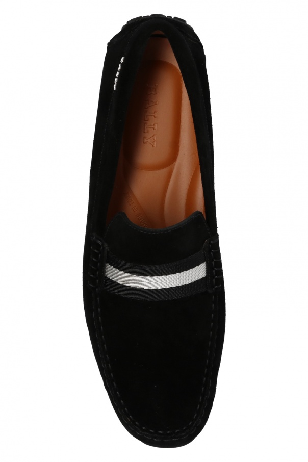 Black ‘Pearce’ moccasins from Bally. Crafted from suede, this design features a sewn-on grosgrain strap, a logo detail and a black rubber sole.