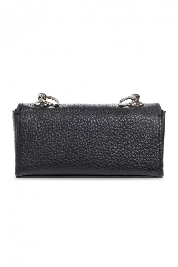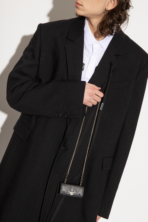 Black lipstick case from Vivienne Westwood. Made of calf leather, this item features a logo application, a chain shoulder strap, silver-tone metal hardware and one internal compartment with a mirror.