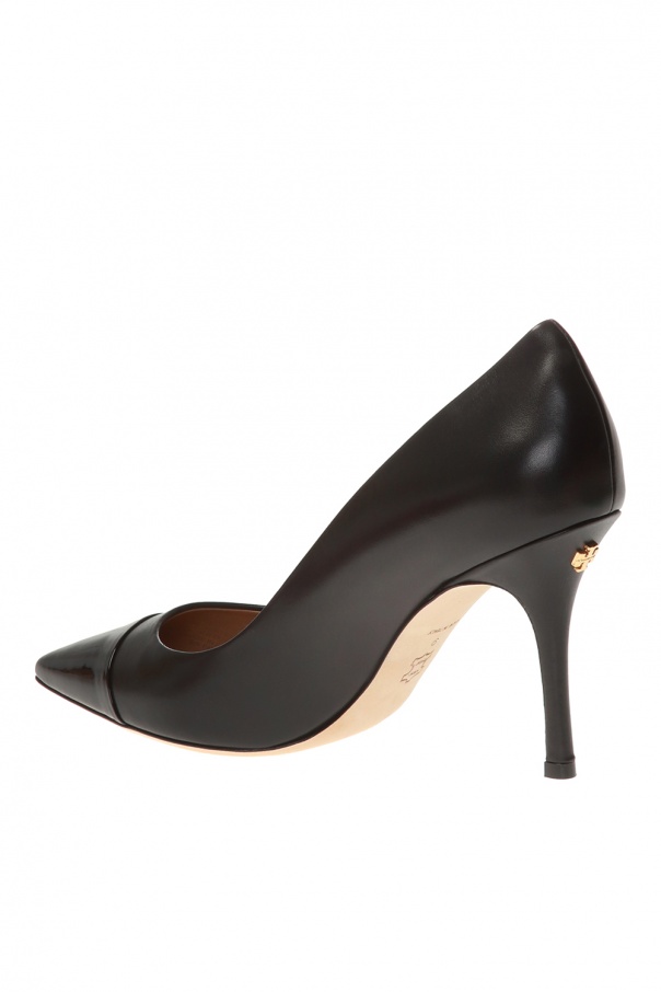Black ‘Penelope’ stiletto pumps from Tory Burch. Made of calf leather. Lacquered pointed toe. Beige leather sole.
