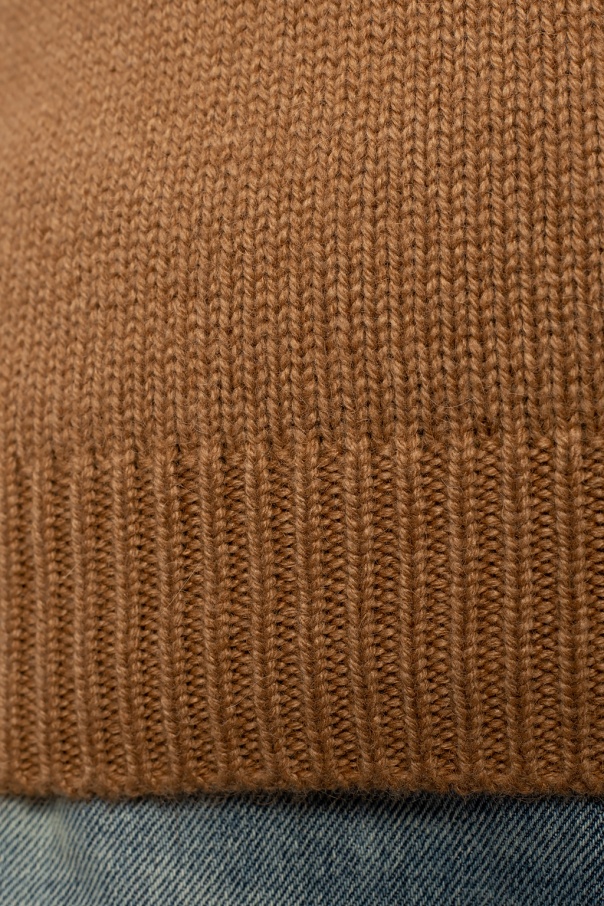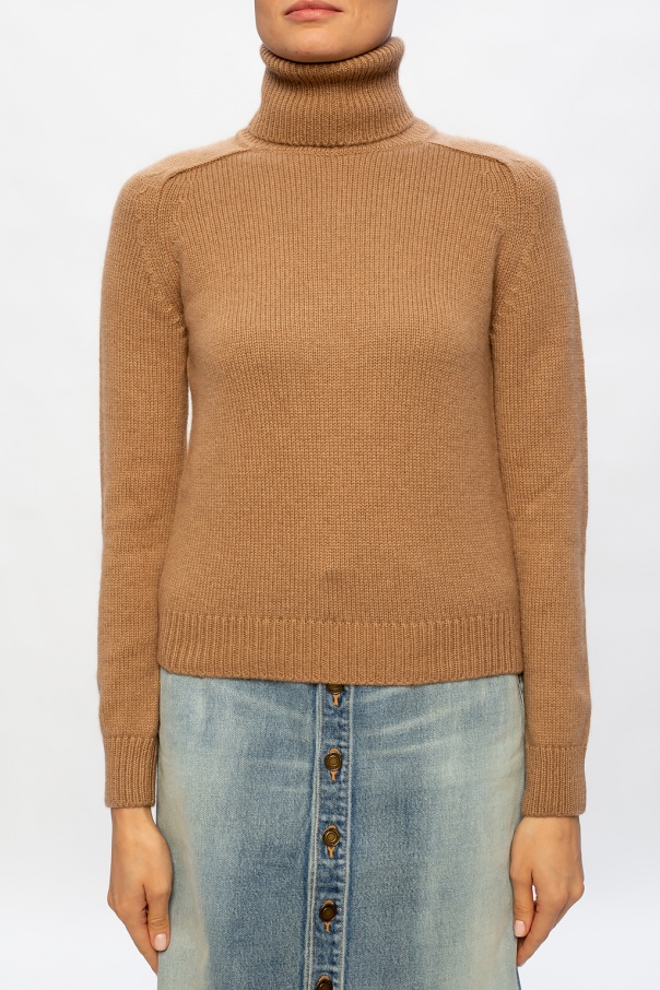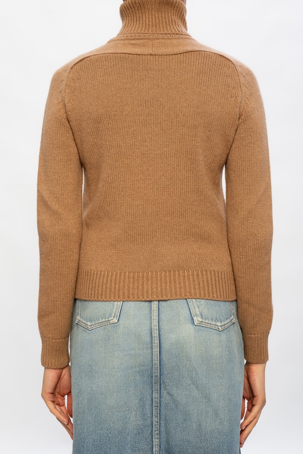Brown turtleneck sweater from Saint Laurent. Made out of camel hair, this luxurious piece of garment features rib-knit design.