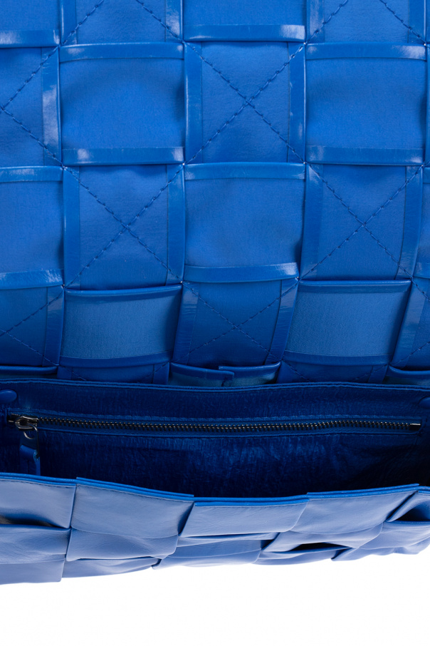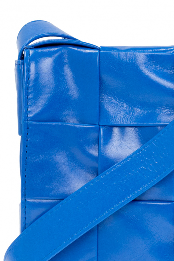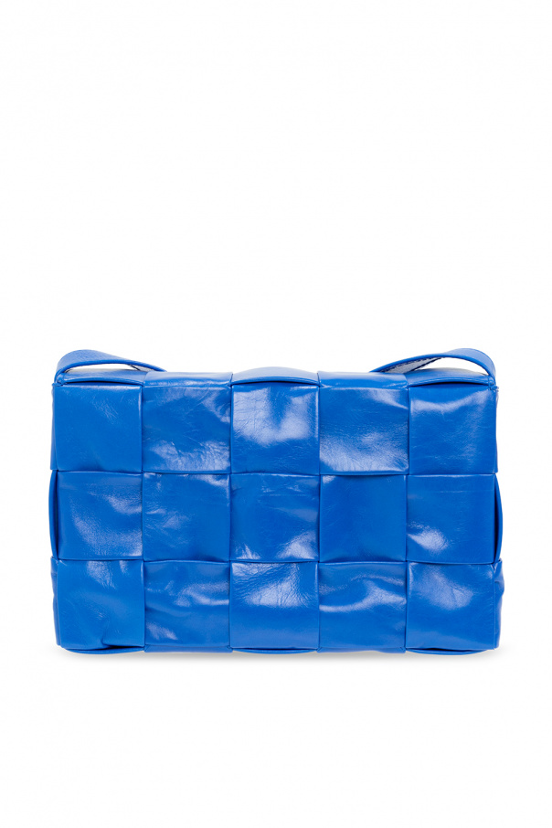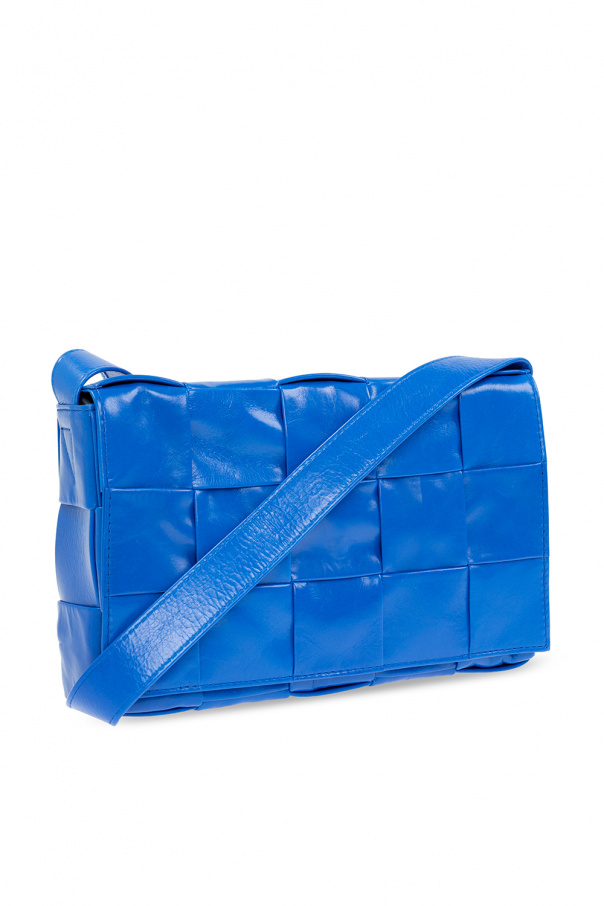 Blue ‘Casette’ shoulder bag from Bottega Veneta. Crafted from calf leather with the label’s signature Intrecciato weave, this model fastens with a magnetic snap and is complete with an adjustable shoulder strap, silver-tone metal hardware and one internal compartment with one zip pocket.