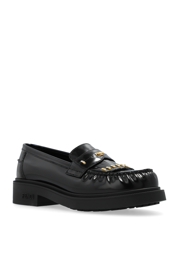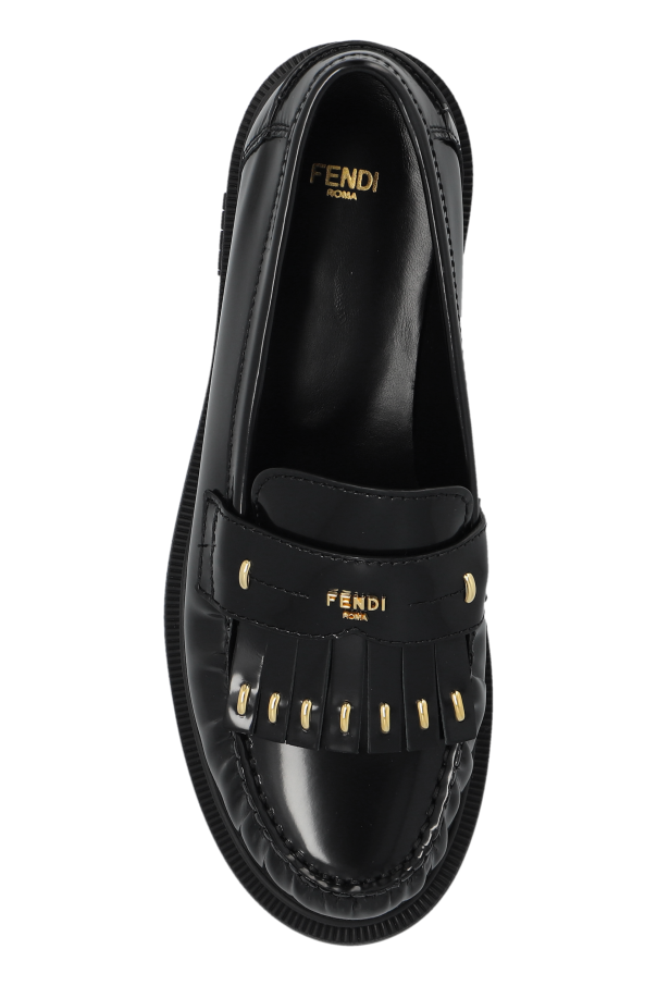 Introducing the epitome of sophistication and style - the Leather Loafers by Fendi. Crafted from lustrous, black leather, these loafers exude an aura of refined elegance and timeless appeal. The classic round-toe design is complemented by distinctive tassels adorned with delicate golden elements, enhancing their opulent charm. The luxurious nature of these loafers is further accentuated by the golden "FENDI ROMA" inscription on the strap above the tassels, a hallmark of the esteemed brand. Inside, the Fendi logo is elegantly displayed, a testament to unparalleled craftsmanship. The sturdy black sole, with its slight elevation, ensures not only aesthetic appeal but also supreme comfort. The rear of the shoes features meticulous stitching and subtle embossing, adding to their unique character. Why Buy This Product? Exquisite Craftsmanship: Made from 100% premium leather, ensuring durability and a luxurious feel. Iconic Design: The golden "FENDI ROMA" inscription and detailed tassels make these loafers a standout piece. Versatile Elegance: The classic black color makes them perfect for both everyday wear and formal occasions. Comfort and Style: The slightly elevated sole provides comfort without compromising on style. Heritage and Prestige: Owning a piece from Fendi, a brand with over ninety years of legacy, is a mark of discerning taste.
