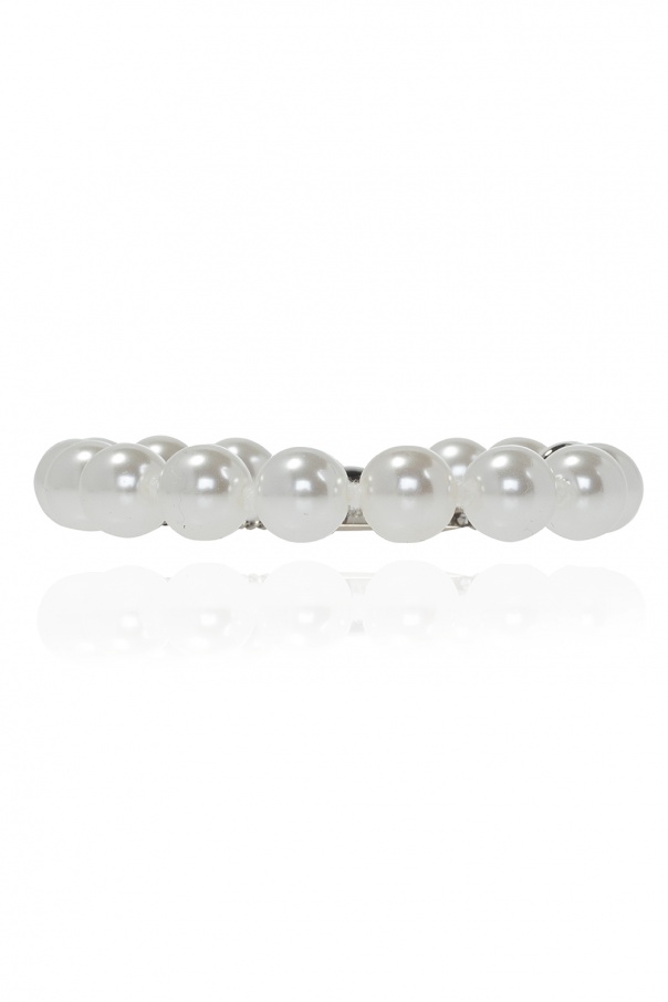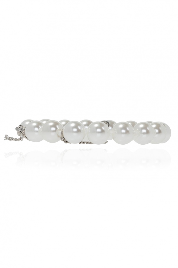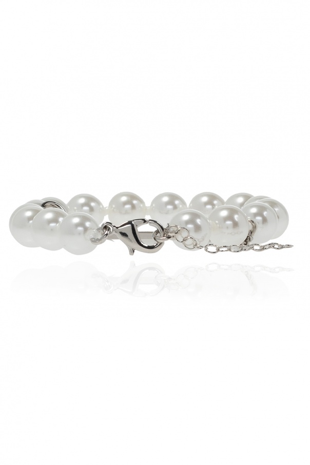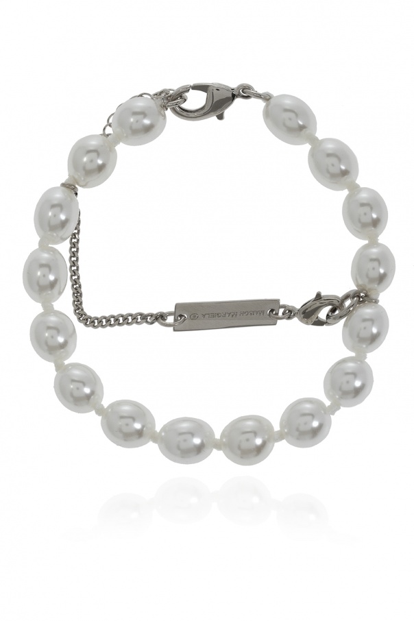 Cream bracelet from MM6 Maison Margiela. Crafted from round glass elements, this piece features a logo-embossed insert and a lobster clasp.