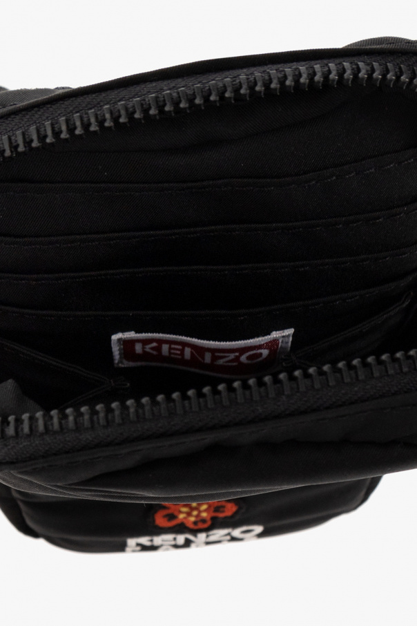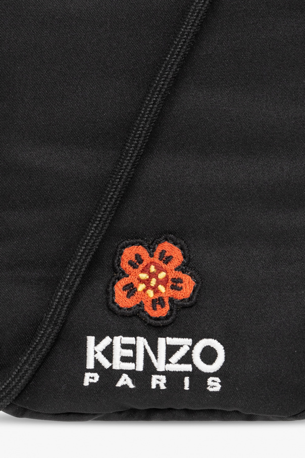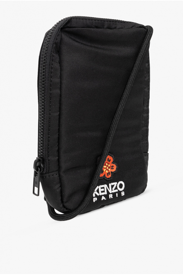Black phone holder from Kenzo. Embellished with colourful ‘Boke Flower’ embroidery accompanied by a white logo, this design features a zip fastening, an adjustable strap and one internal compartment with four card slots.