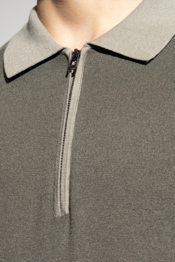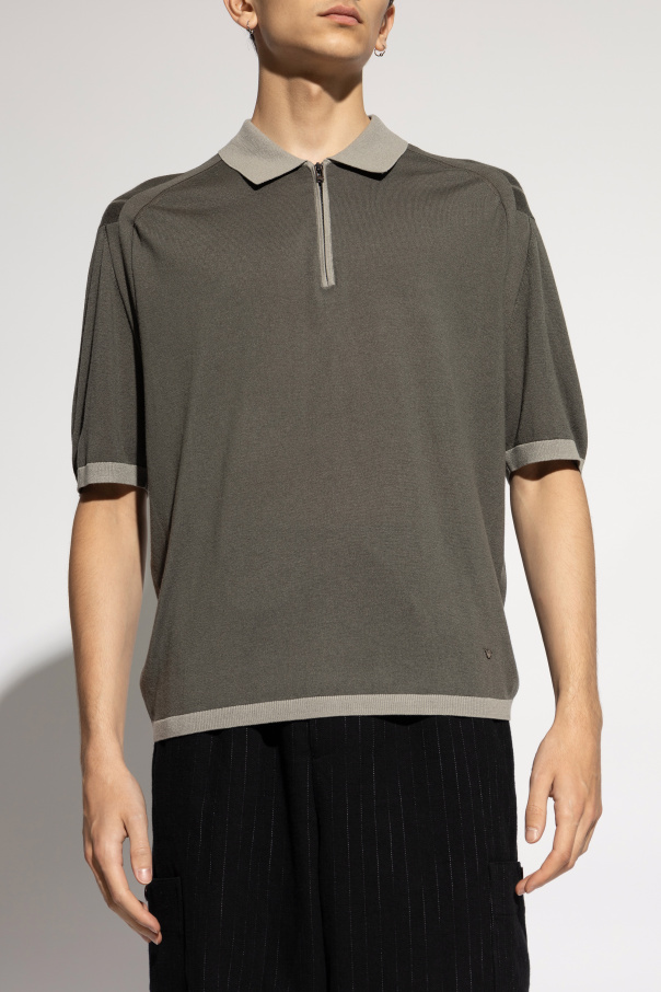 Introducing an exquisite addition to the discerning wardrobe: the Emporio Armani Logo Polo. Crafted with an impeccable blend of materials - 55% Lyocell, 40% Wool, and 5% Silk - this polo epitomizes both sophistication and comfort. Its tactile texture and smooth finish, courtesy of the fine blend, offer an unparalleled wearing experience, ensuring you stand out with refined elegance. The polo features a classic silhouette with a modern twist, boasting a slightly tapered fit designed to accentuate the physique gracefully. The dark khaki hue exudes versatility and understated elegance, making it a perfect piece for any occasion. Contrasting lighter green accents on the collar and sleeve edges add a touch of vibrancy, enhancing its overall appeal. Distinctive details such as the discreetly placed designer logo on the left breast and a practical zipper at the collar elevate the polo beyond a mere clothing item to a statement of style. The gentle ribbing at the hem and tapered cuffs ensure a flawless fit, further testament to the meticulous design and craftsmanship that define Emporio Armani. Why Purchase This Product? Exceptional Material Blend: The luxurious combination of Lyocell, Wool, and Silk offers unmatched comfort and durability. Elegant Design: The sophisticated dark khaki, accented with lighter tones and a sleek silhouette, ensures versatility and style. Signature Details: From the subtle logo to the functional zipper, every element reflects the high standards of Emporio Armani craftsmanship. Versatile Fit: Tapered for elegance, yet comfortable for everyday wear, it's an essential piece for the modern wardrobe.