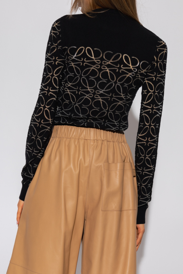 Black crewneck sweater from Loewe. Crafted from wool, this style features a logo graphic and ribbed trims on the collar, bottom hem and cuffs.
