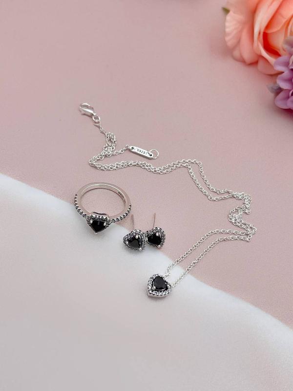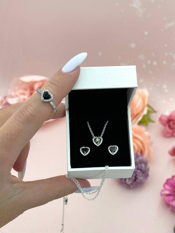Серебряный набор украшений Pandora 🖤 Черное сердце