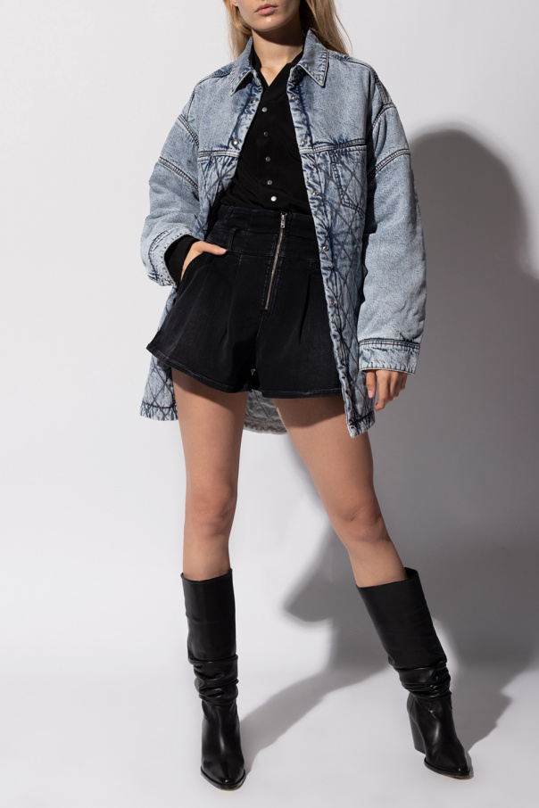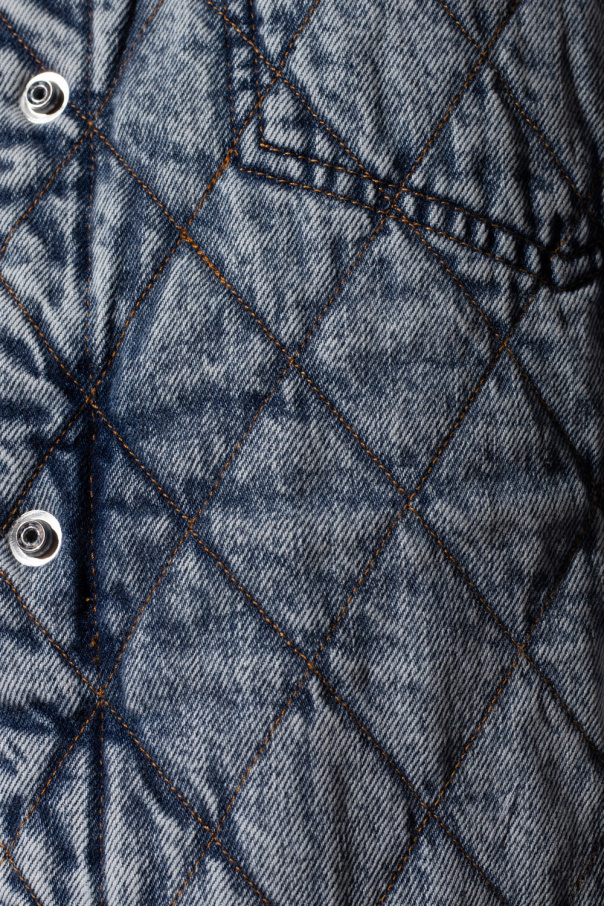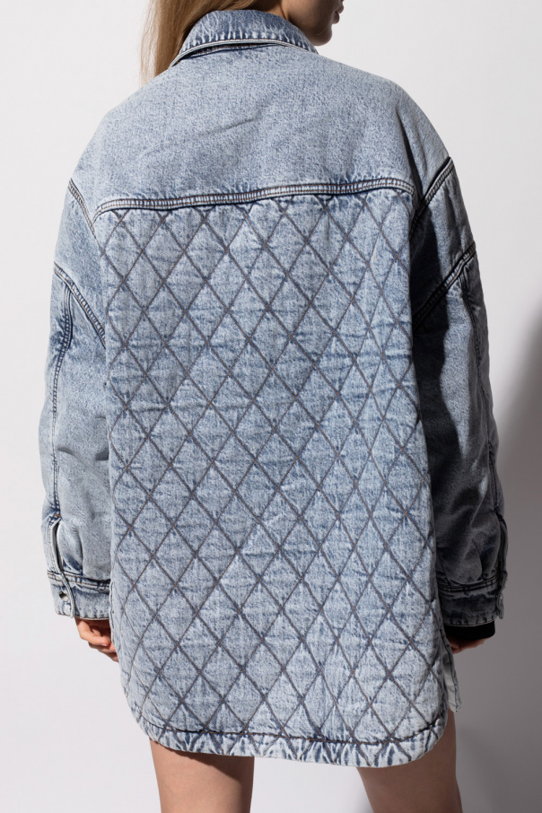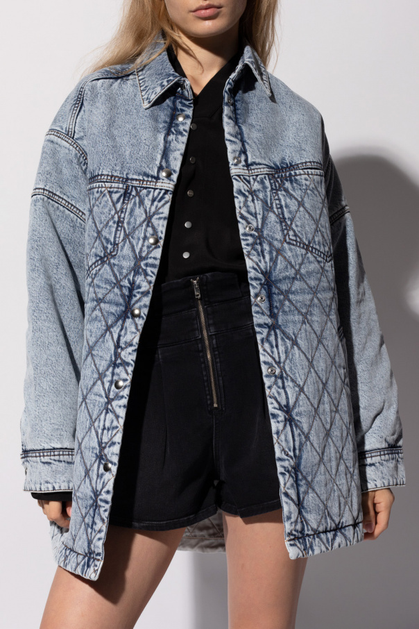 Blue denim jacket from Iro. Crafted from cotton, this style fastens via snaps and features exposed stitching details, four slip pockets, long sleeves and split with snap closures on the bottom hem.