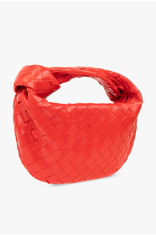Red ‘Jodie Mini’ handbag from Bottega Veneta. Crafted from lamb leather and calf leather with the brand's signature Intrecciato weave, this design features a zip fastening, a half-round handle, gold-tone metal hardware and one internal compartment.
