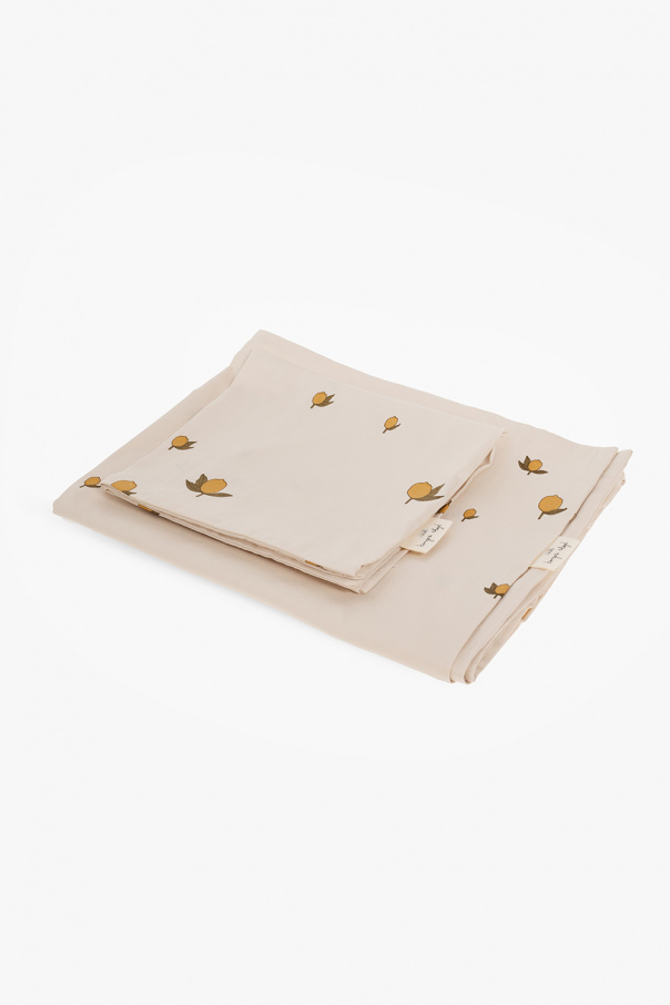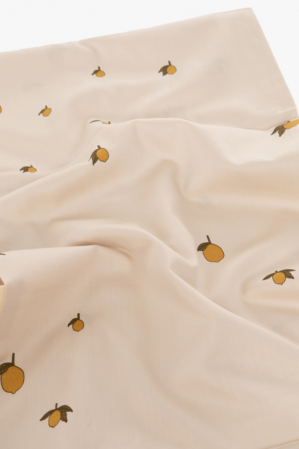 Cream bedding set from Konges Slojd. Made of organic cotton, this set is decorated with a lemon pattern and fastens with a zip. Comes with a canvas carry bag.