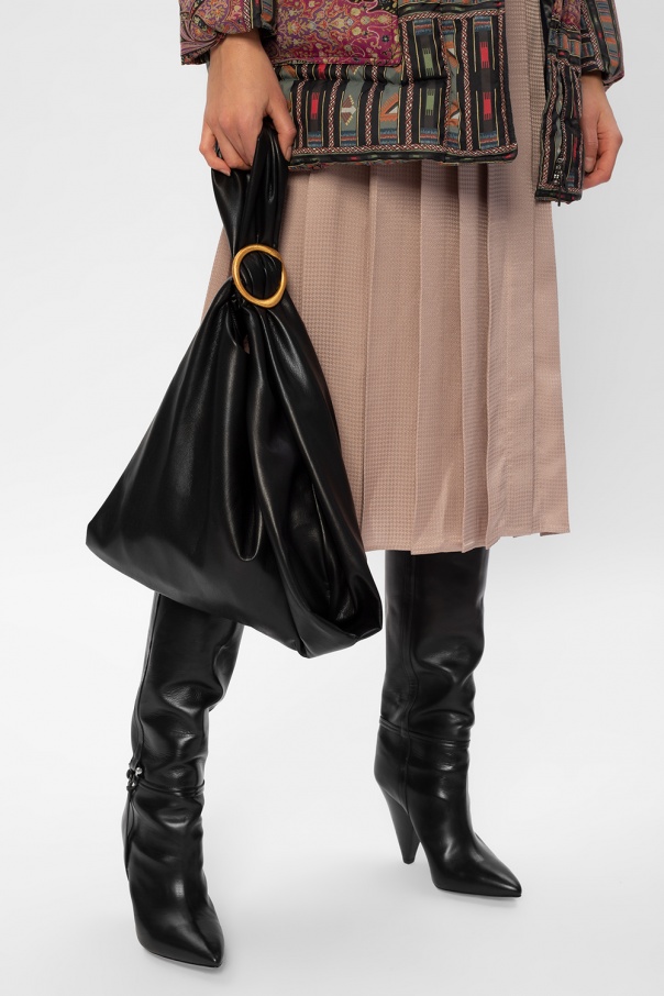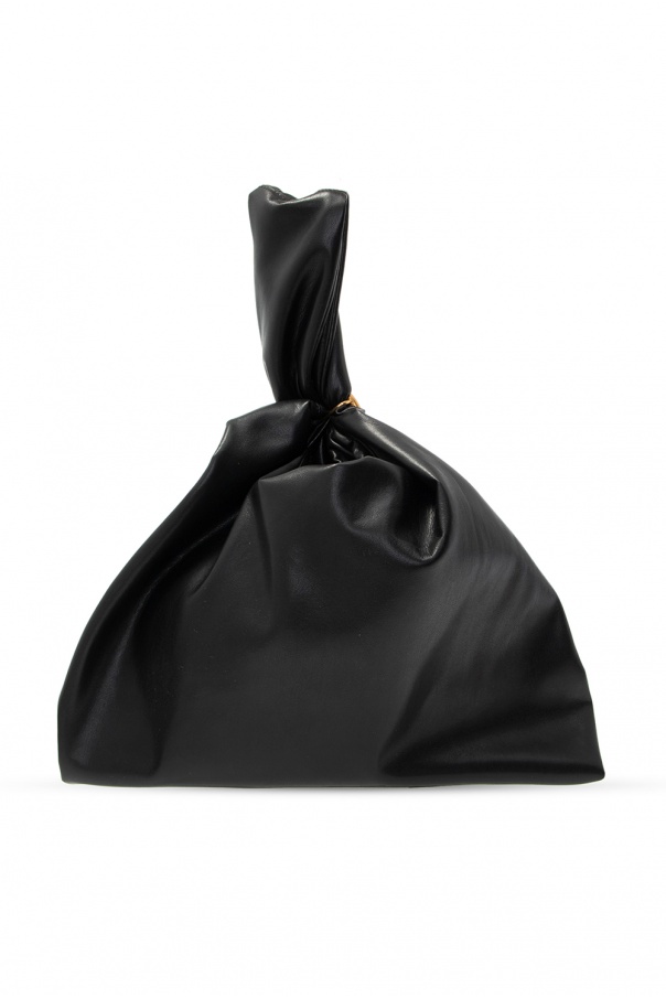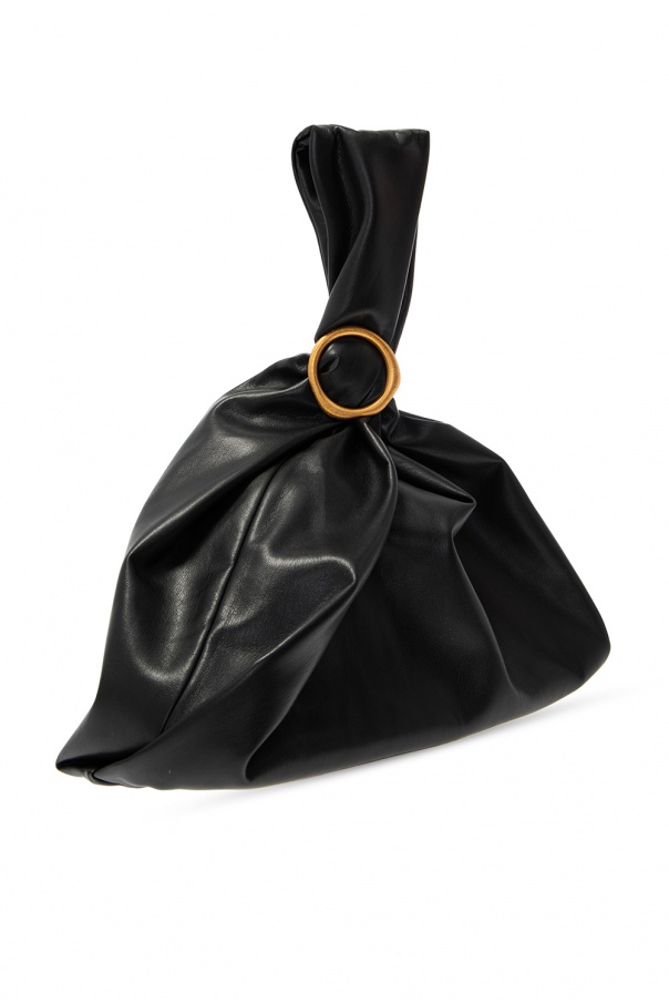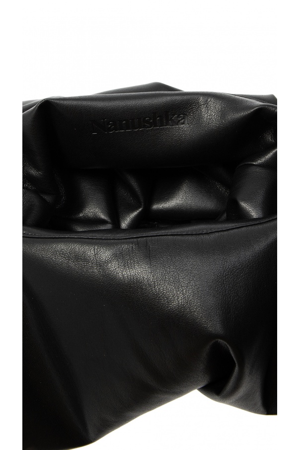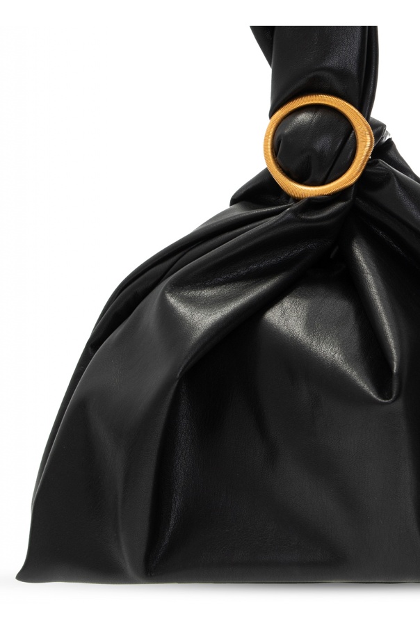 Black ‘Julia’ hand bag from Nanushka. Crafted from eco-leather, this design comes with a distinctive gold-tone loop and one internal compartment.