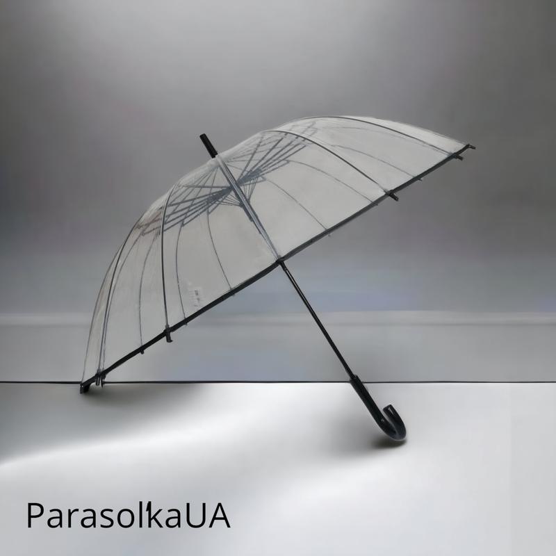 Прозрачный женский зонт-трость в стиле "birdcage", черный, полуавтомат