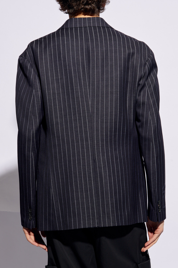 Navy blazer from Off-White. Made of wool, this design features buttons, a stripe pattern, notch lapels, three slip pockets and long sleeves.