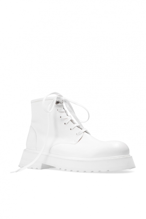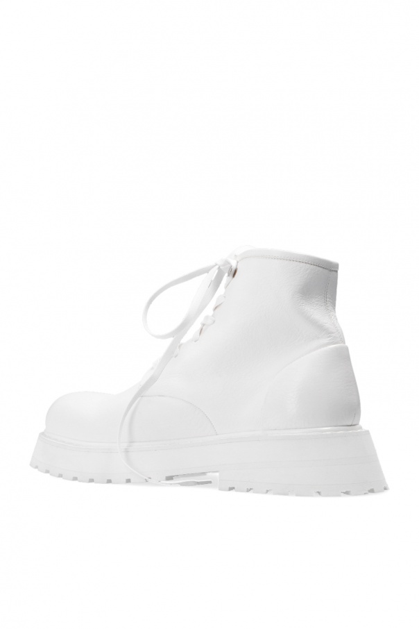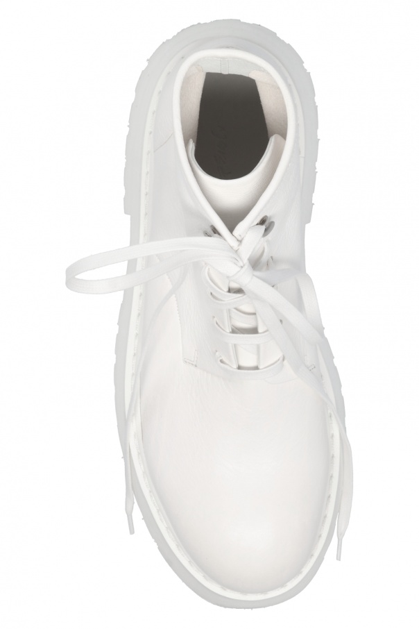 White ‘Miccaro’ ankle boots from Marsell. Crafted from leather, this lace-up pair sits on a white rubber sole.