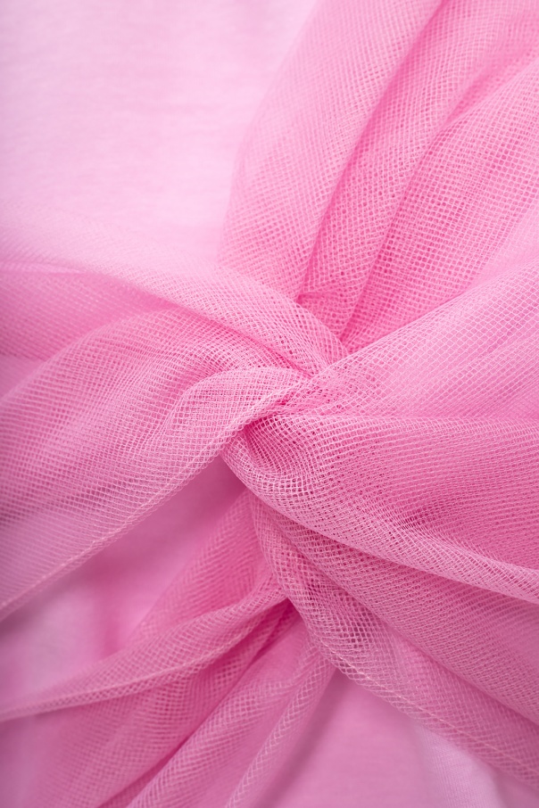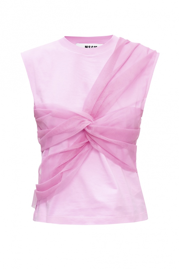 Pink top from MSGM. Emblazoned with a tulle insert, this cotton-crafted style is complete with an elasticated round neck.