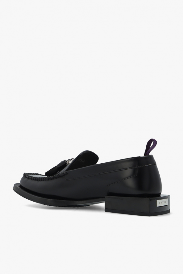 Black ‘Rio’ shoes from Eytys. Made from leather, this model sits on a distinctive rubber sole and showcases a tasseled appliqué.