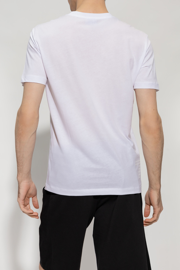 White T-shirt from EA7 Emporio Armani. Made of cotton, this short sleeve design features a raised logo in silver-tone and round neck.