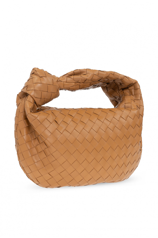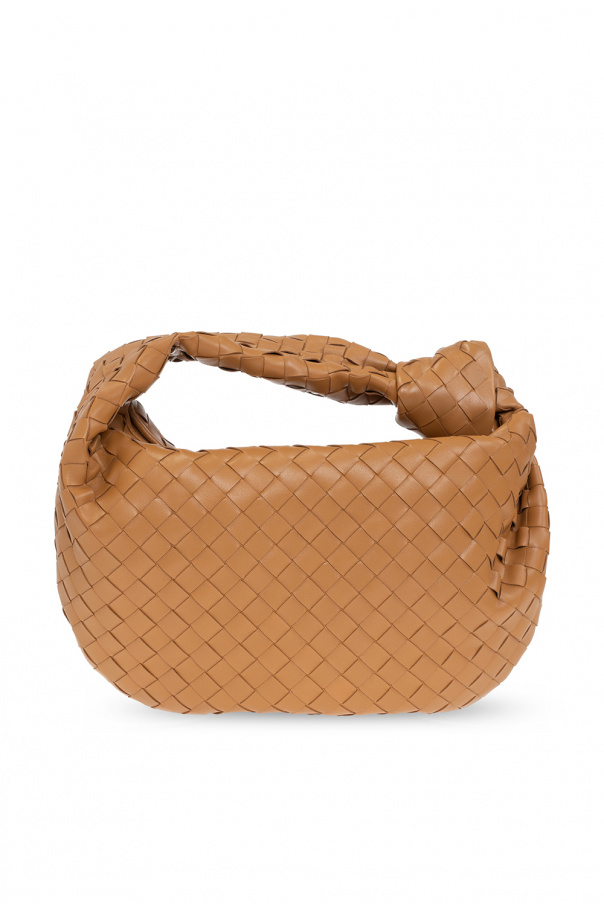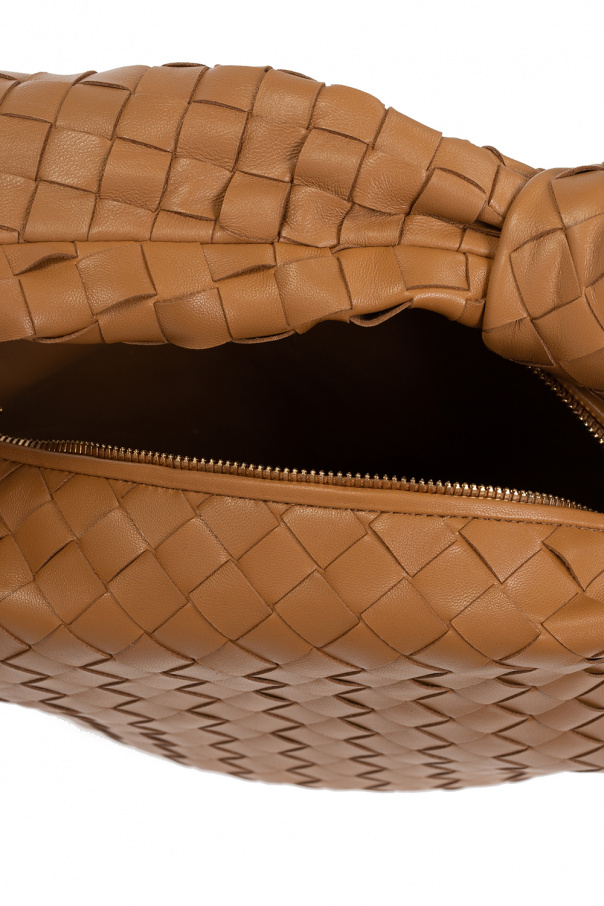 Light brown ‘Jodie Teen’ handbag from Bottega Veneta. Made of lamb leather with the Intrecciato weave, this model features a zip fastening, half-round handle, one internal compartment and gold-tone metal hardware.