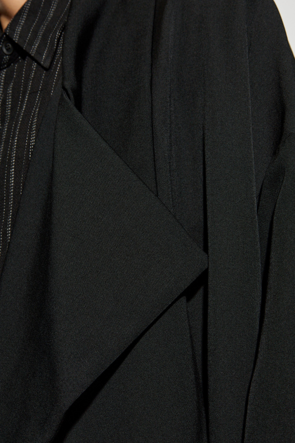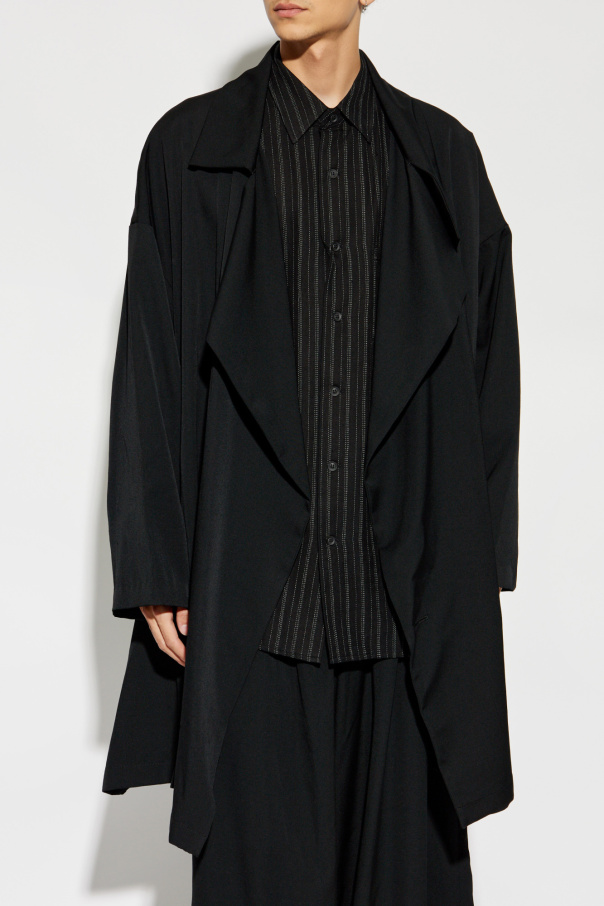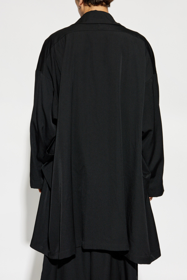 Introducing the 'Oversized Coat' from the exclusive collection by renowned designer Yohji Yamamoto. This avant-garde piece epitomizes a harmonious blend of simplicity, elegance, and contemporary style, perfect for casual, everyday wear. Crafted from sumptuous wool for the outer layer and luxuriously smooth cupro for the inner lining, this coat ensures unparalleled comfort and sophistication. The loose, oversized silhouette, complemented by long sleeves with dropped shoulders and an extended back, exudes a relaxed yet modern vibe. The coat's sleek, solid black hue and absence of patterns enhance its minimalist allure. Featuring an asymmetrical button closure and a wide, draping collar, this piece stands out as a testament to innovative design. Why Choose This Product? Designed by the illustrious Yohji Yamamoto, a pioneer in the fashion world. Luxurious materials: 100% wool exterior and 100% cupro interior. Modern oversized fit with distinctive asymmetrical button closure. Timeless black color for versatile styling. Perfect for creating effortlessly chic, casual looks.