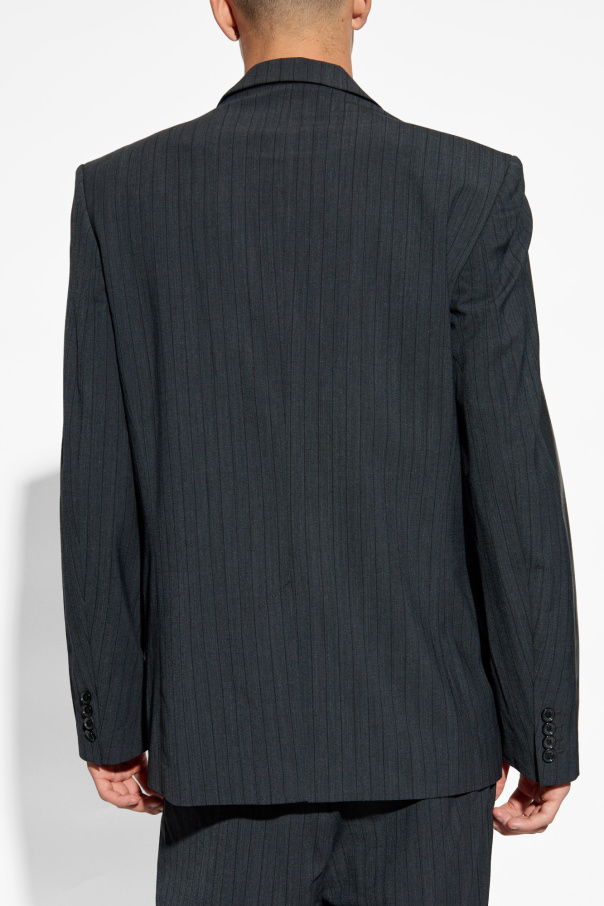 Introducing the J-STANLEY blazer, an exquisite piece from Diesel's exclusive menswear collection. This blazer is a harmonious blend of classic sophistication and contemporary design, making it a quintessential addition to any formal wardrobe. Crafted from a luxurious combination of polyester, wool, and elastane, the J-STANLEY blazer boasts a subtly lustrous finish, enhancing its elegant aesthetic. The classic cut features lightly tapered waists and straight shoulders, delivering a timeless silhouette. The blazer is adorned with delicate vertical stripes, adding a touch of refinement to its formal appeal. It features traditional lapels, a two-button front closure, and three pockets—two flap pockets on each side and a chest pocket—ensuring both functionality and style. Why Choose This Product? Timeless and sophisticated design High-quality fabric with a slight sheen Classic lapels and elegant vertical stripes Functional pockets for added convenience