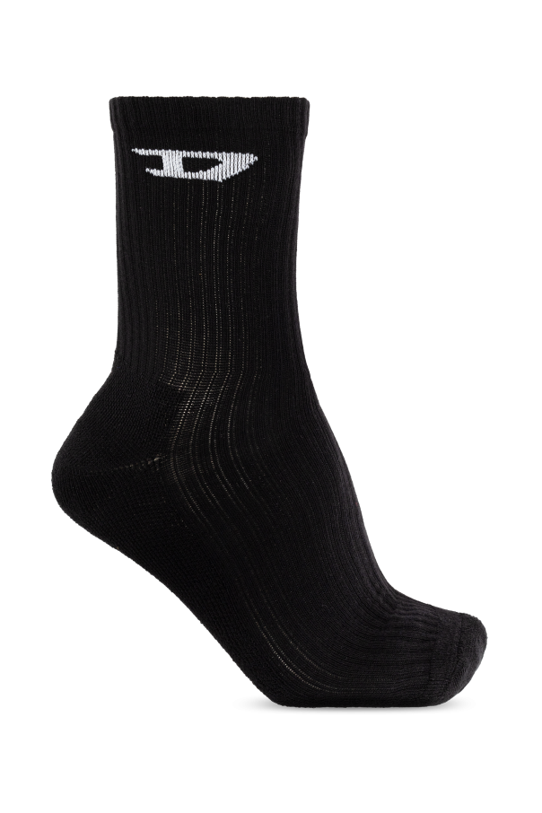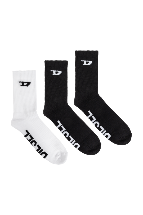 Presenting the exquisite SKM-D-CREW-SPORT-SOCKS, a distinguished trio of socks from the exclusive Diesel men's clothing collection. This set includes two pairs of black socks and one pair of white socks, each meticulously crafted to ensure both comfort and style. These socks feature a classic, sporty design that reaches mid-calf. Made from a ribbed, elastic material, they offer excellent ventilation and comfort. Each pair is adorned with the designer's logo—black on the white socks and white on the black socks—positioned just below the cuff for a subtle yet sophisticated touch. Additionally, one of the black pairs and the white pair are emblazoned with the "DIESEL" name in a contrasting color on the sole. With a well-contoured shape, these socks provide an impeccable fit, making them ideal for everyday wear and athletic activities. As part of the Diesel collection, they exemplify the brand's commitment to high quality and attention to detail. Why Choose This Product? Elegant and sporty design Crafted from a blend of cotton, polyester, polyamide, and elastane for superior comfort Exclusive Diesel branding Perfect fit and excellent ventilation Part of a renowned collection known for its high quality
