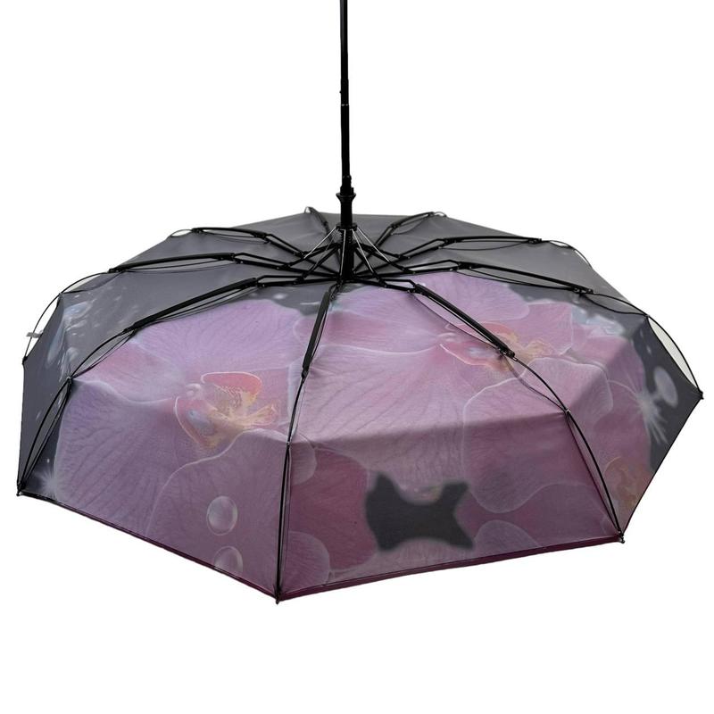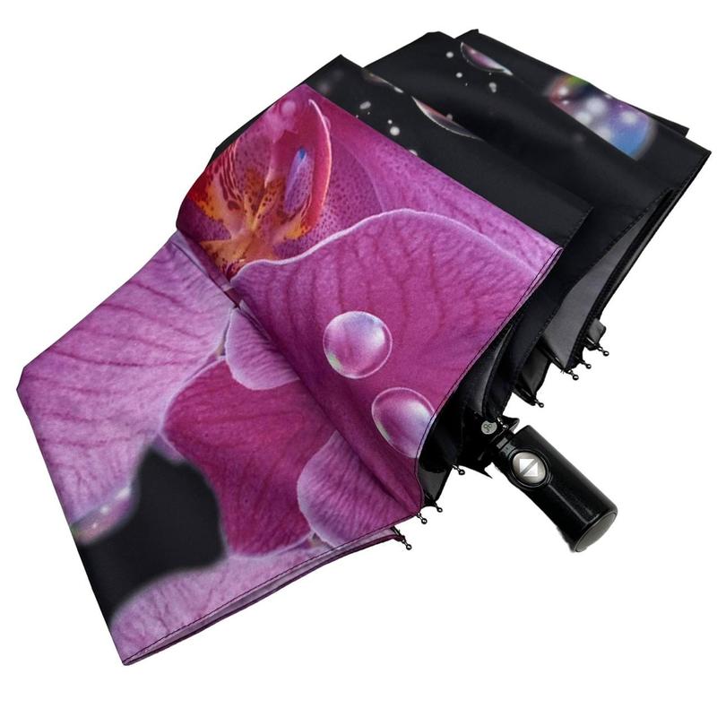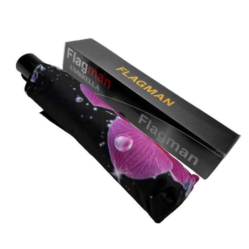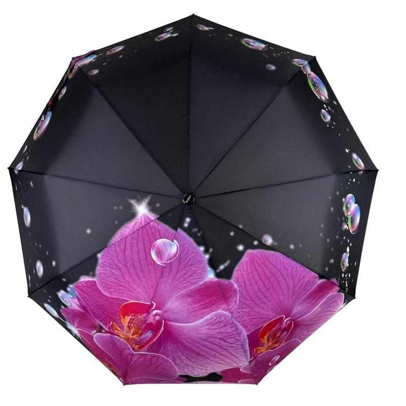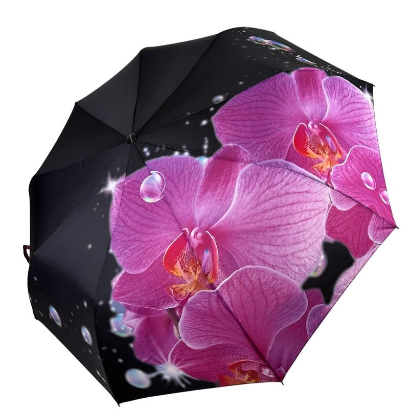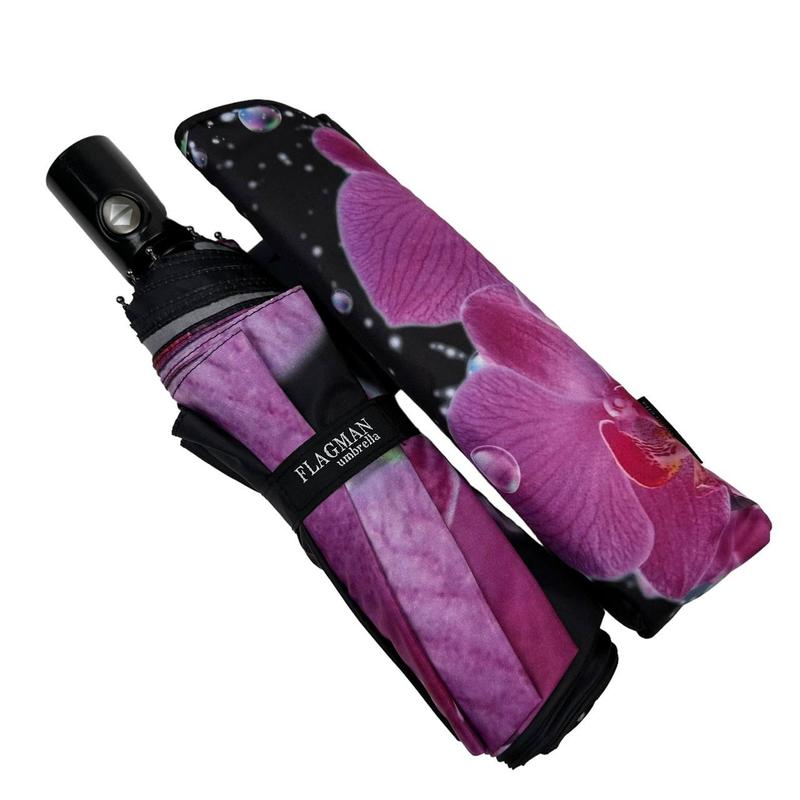 Складной женский зонт-автомат от Flagman с принтом орхидеи на 9 спиц. С