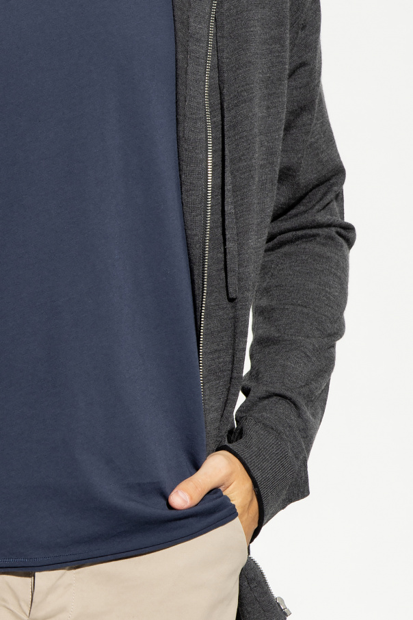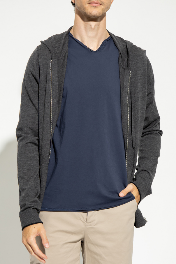 Dark grey ‘Clash’ hooded sweater from Zadig & Voltaire. Crafted from merino wool, this garment is complete with a zip fastening, drawstring hood, two slip pockets and ribbed trims at the hem and cuffs.