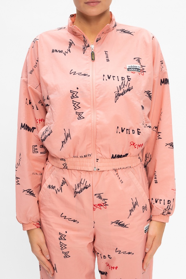 Pink sweatshirt from ADIDAS Originals, the ‘R.Y.V.’ collection. Fastened with a zip, this design features a black and white logo patch, a printed pattern, two front slip pockets and elasticated trims at the hem and cuffs.