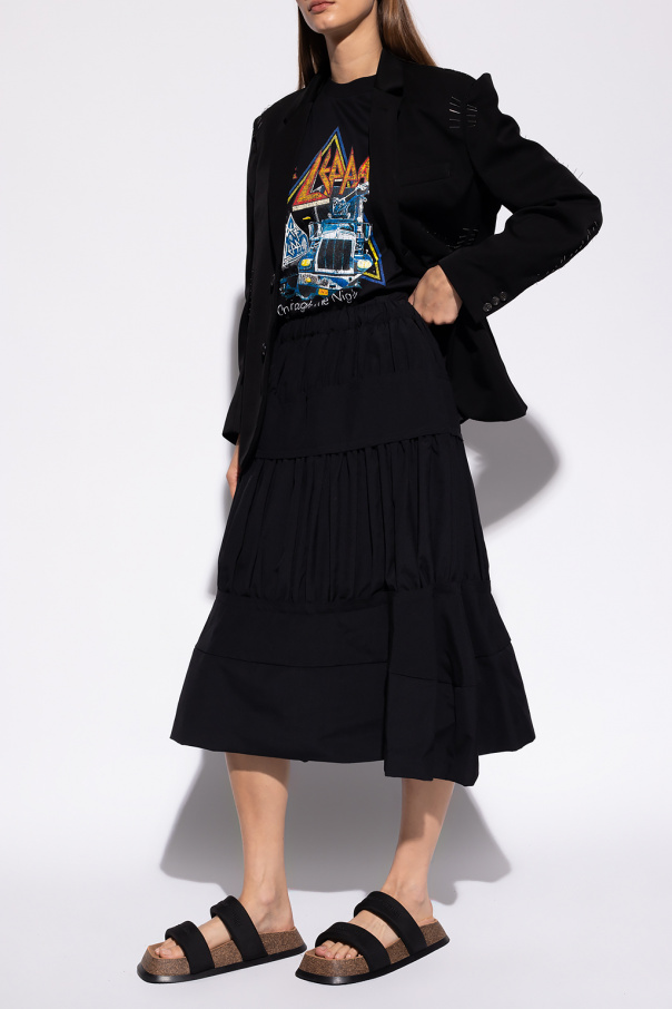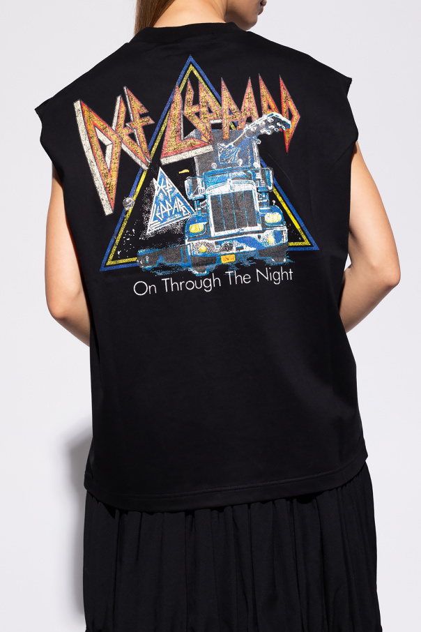 Black crewneck sleeveless T-shirt from Junya Watanabe Comme des Garçons. Crafted from cotton, this style showcases a colourful graphic print with the brand's logo on the front.