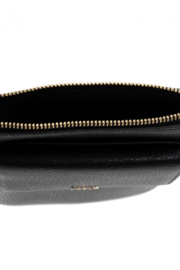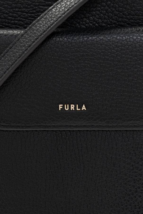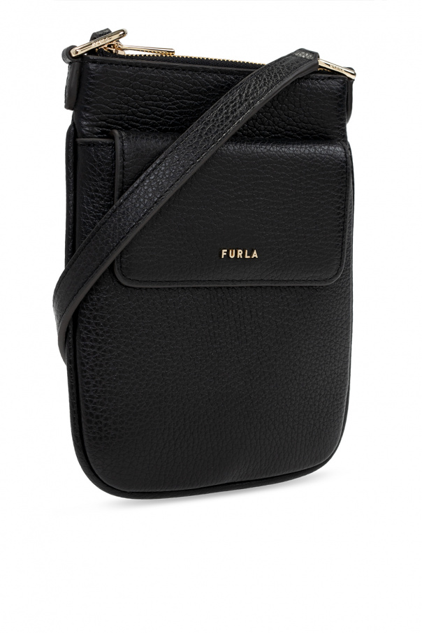 Black ‘Babylon M’ phone bag from Furla. Crafted from leather, this design fastens with a zip and is complete with a logo appliqué, front pocket with a magnetic snap, adjustable strap, one internal compartment and gold-tone metal hardware.