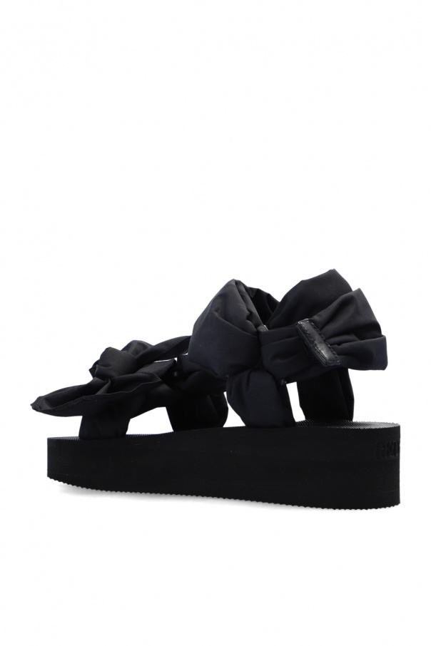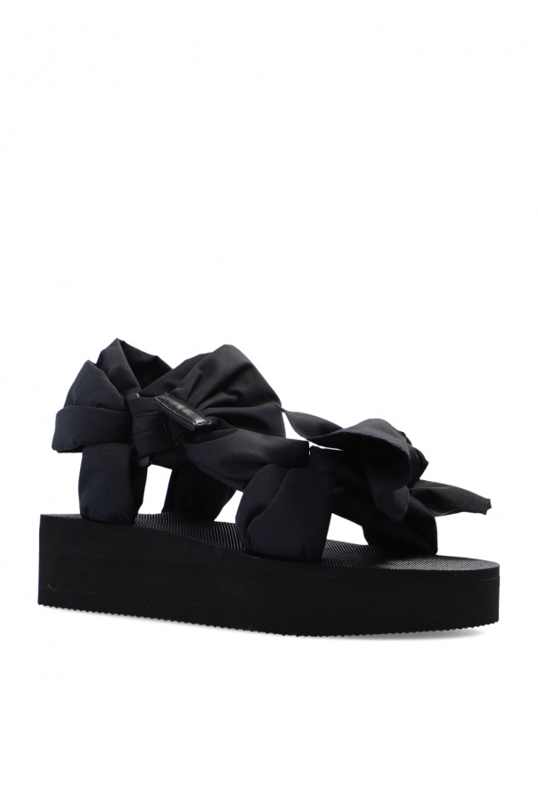 Black platform sandals from Red Valentino. Fastened with velcro, this pair features a bow detail and black rubber sole.