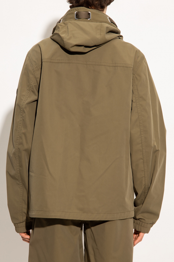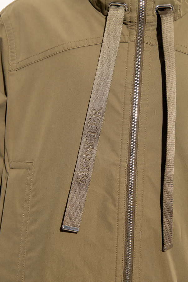 Khaki ‘Haru’ jacket from Moncler. Fastened with a two-way zip, this garment features a hood with logo-embroidered drawstrings, two front zip pockets and long sleeves with elasticated cuffs and a rubber logo patch.