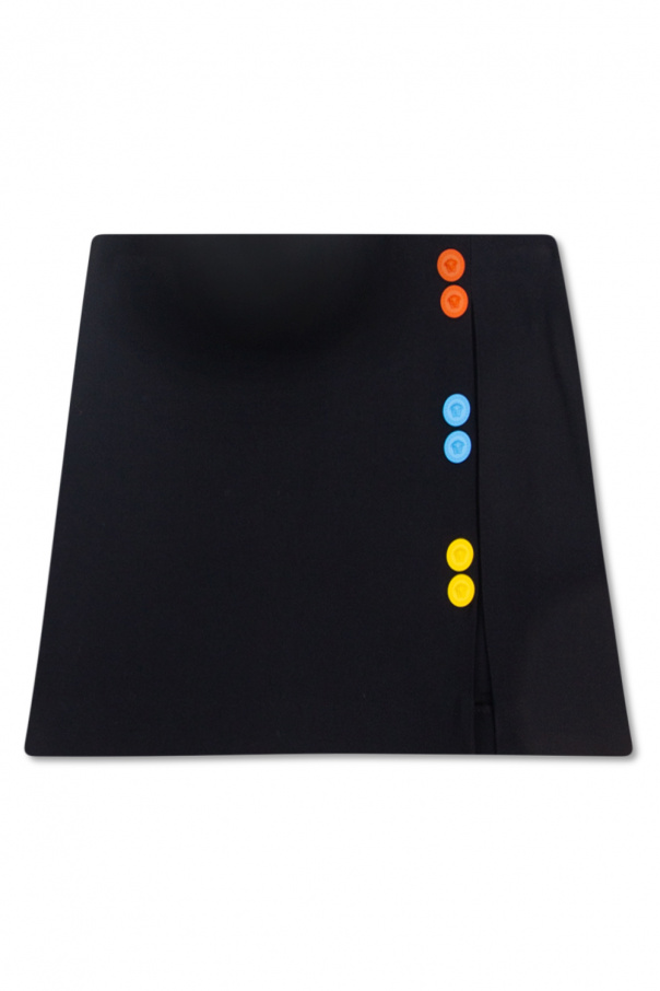 Black skirt from Versace Kid. Fastened with a concealed side zip, this design features decorative Medusa head buttons in red, blue and yellow.