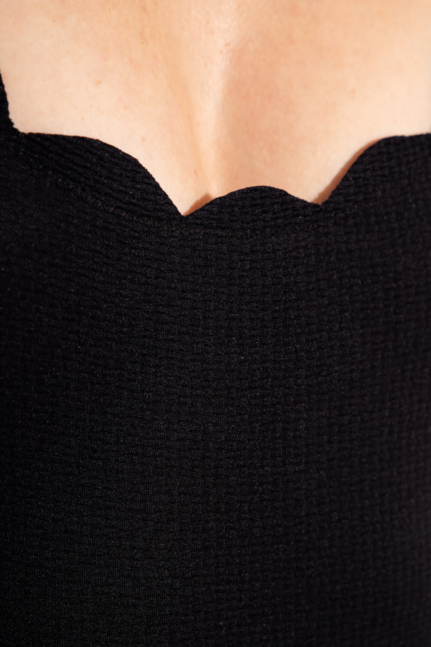 Reversible scalloped one-piece swimsuit with straps from Marysia. Made from recycled materials, this design is black on one side and navy on the other.