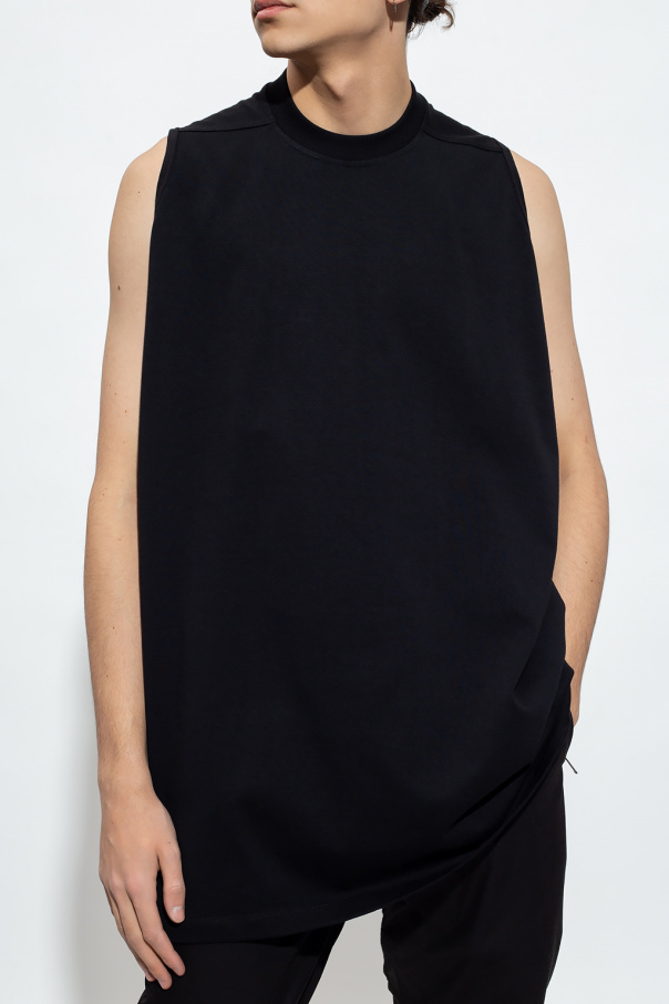 Black sleeveless crewneck T-shirt from Rick Owens. Made of cotton.