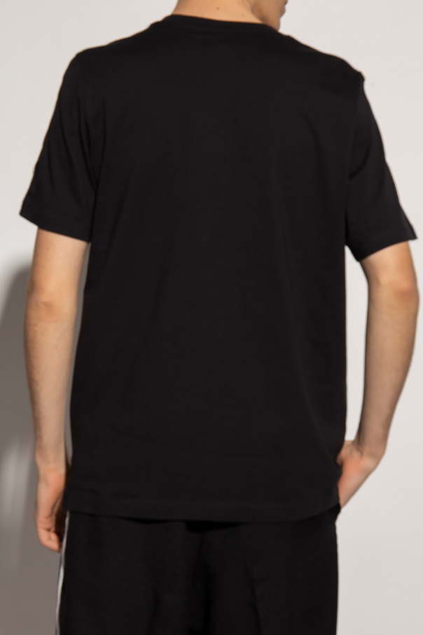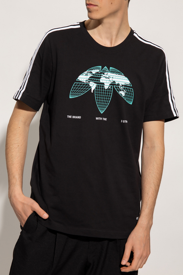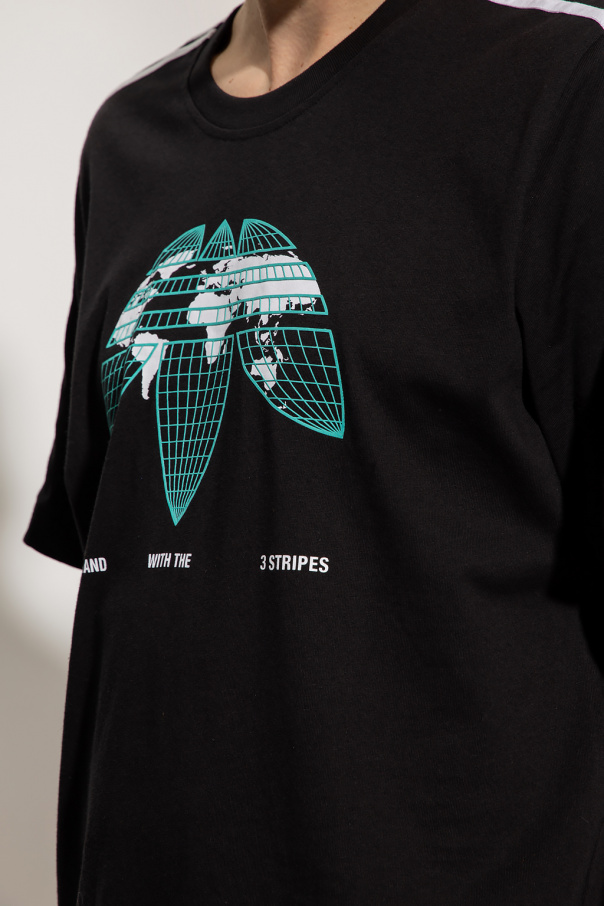 Black T-shirt from ADIDAS Originals. Crafted from cotton, this short sleeve design features a green and white Trefoil logo print, the label’s signature three stripes down the sleeves and ribbed crew neck.