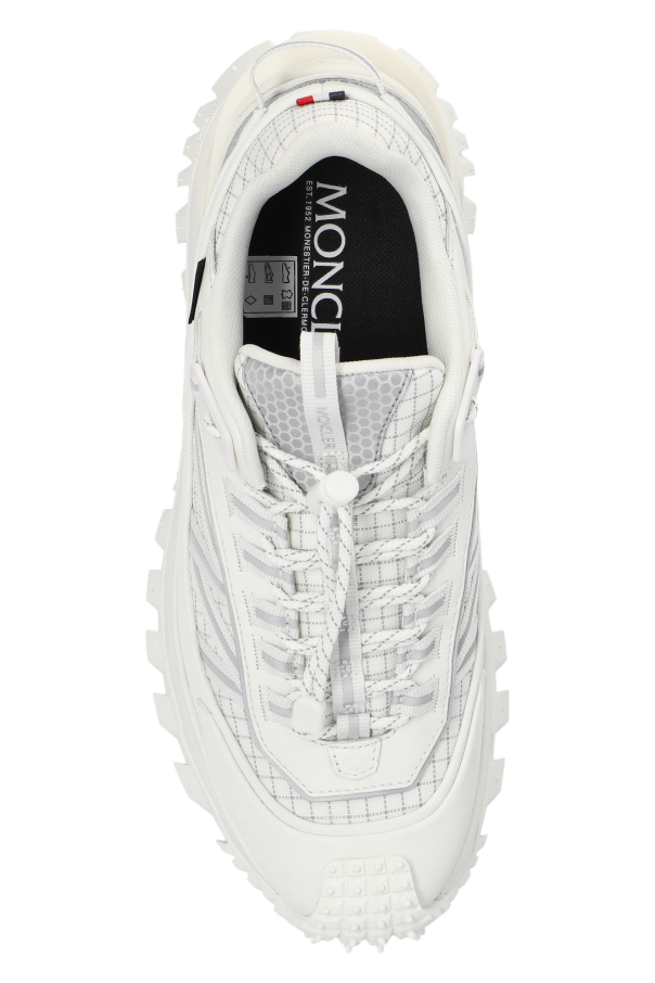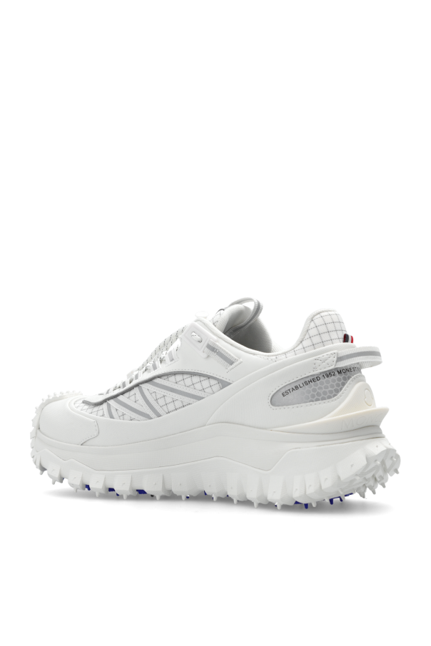 Cream ‘Trailgrip GTX’ sneakers from Moncler. Crafted from durable Ripstop covered with the water-resistant GORE-TEX® membrane, this pair is complete with lace-tightening system, logo detail, check pattern, reflective elements, OrthoLite® insole, EVA midsole, carbon fiber between midsole and tread as well as a special Vibram MEGAGRIP rubber compound tread in blue and cream.
